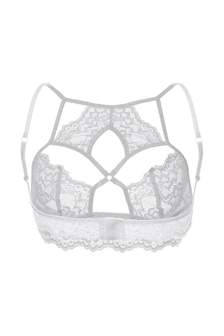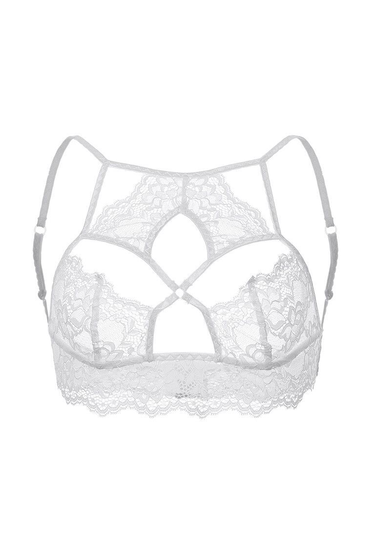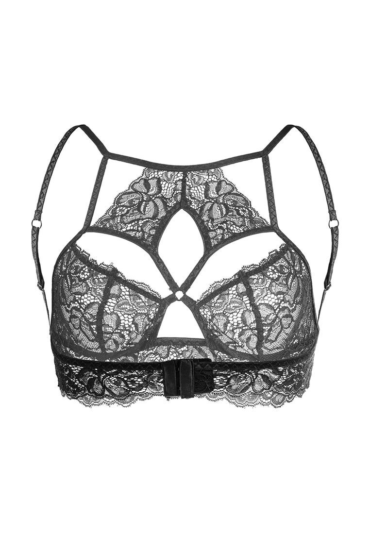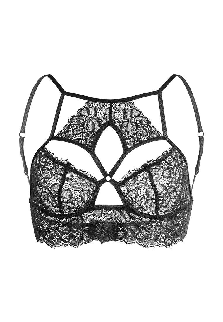 Бралетт. Мягкий кружевной удлиненный топ с декоративными вырезами. Регулируемые бретели. Двухрядная застежка на спине.