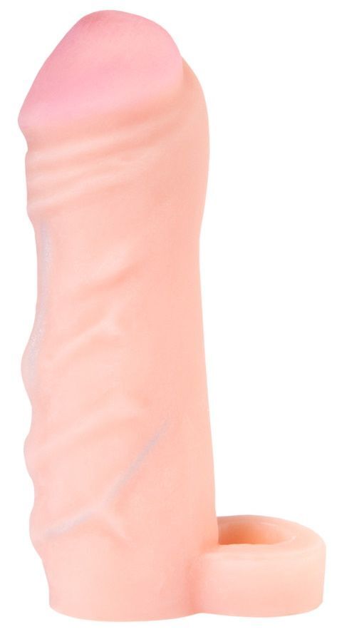Насадка удлиняющая с кольцом, выполненная из реалистичного материала Softskin. Благодаря своей эластичности легко растягивается и одевается на член, увеличивая его в длину. Кольцо для мошонки отлично фиксирует насадку и продлевает удовольствие во время полового акта. Прирост длины - 3 см. Прирост в диаметре - 1 см.