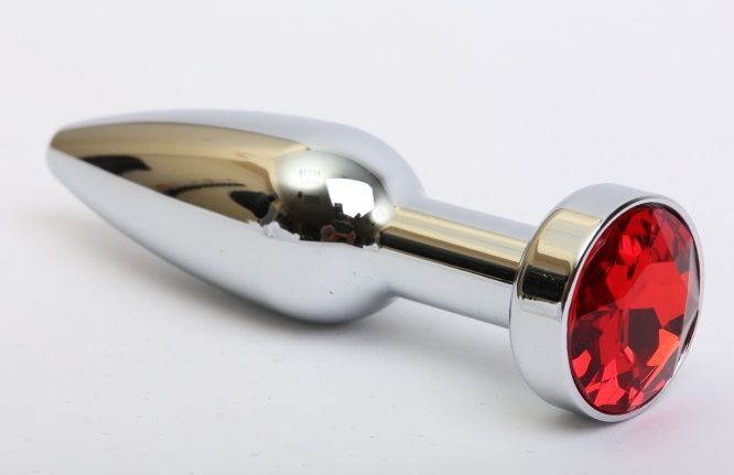 Удлинённая серебристая пробка с красным кристаллом - 11,2 см.