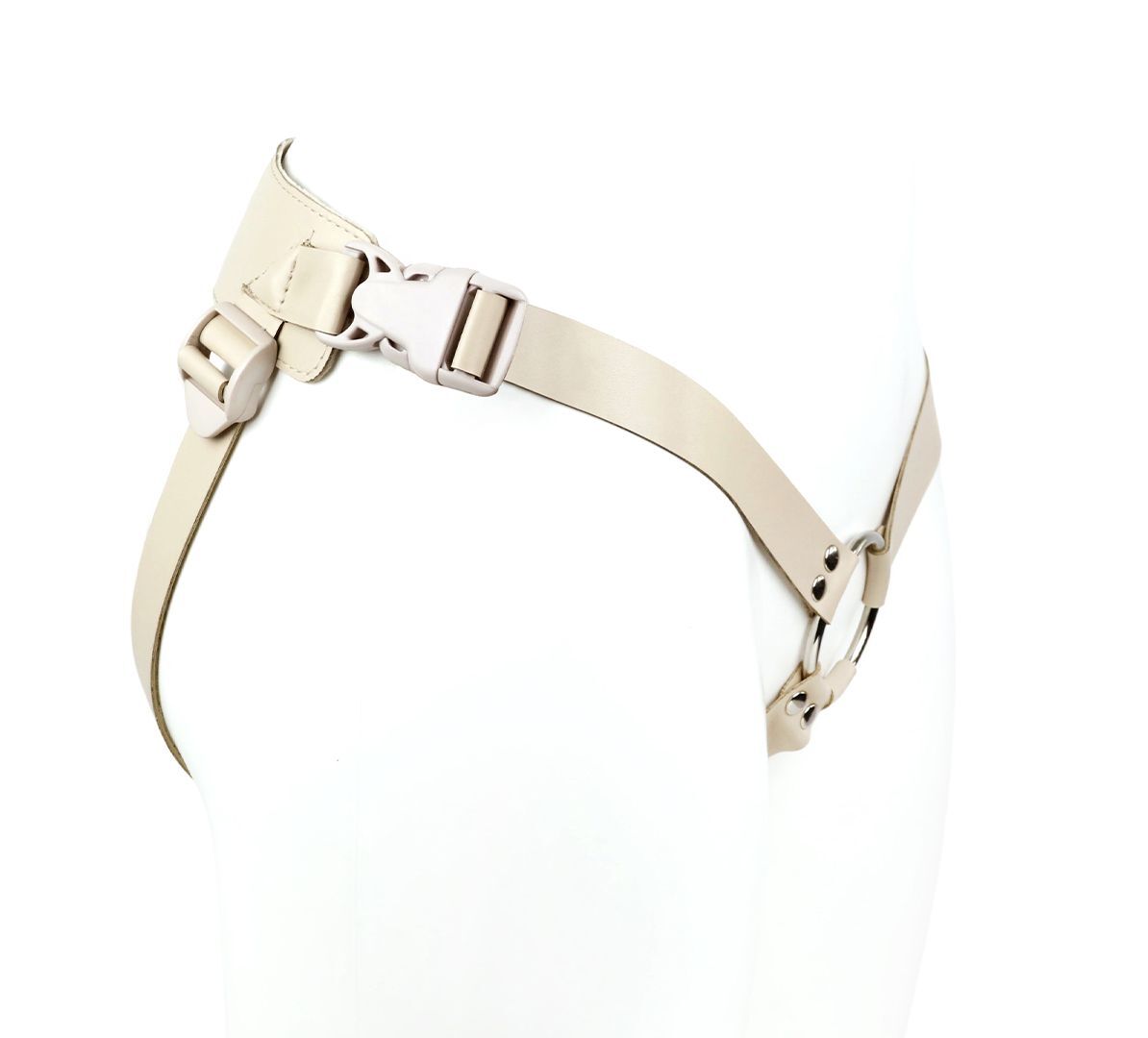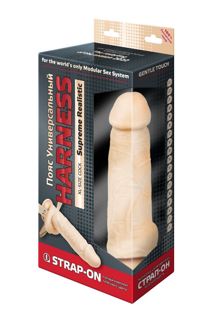 Пояс–кольцо: универсальный для реалистиков с присоской и плагов. Cнабжена кожаным бандажным поясом на бархатном основе и фастексами-быстросьемами. Модель подходит как мужчинам, так и женщинам. Регулируется по форме тела всего один раз. Дальше просто расстегивается с помощью пряжек-фастексов и надевается в следующий раз, как готовое лекало. Металлическое кольцо в конструкции харнесса позволяет использовать любые фаллоимитаторы с присоской. В данной комплектации пояс и насадка прилагаются в телесной цветовой гамме. Такой комплект предлагается для пар, которым важна естественность и максимальная схожесть с обычным интимным контактом.