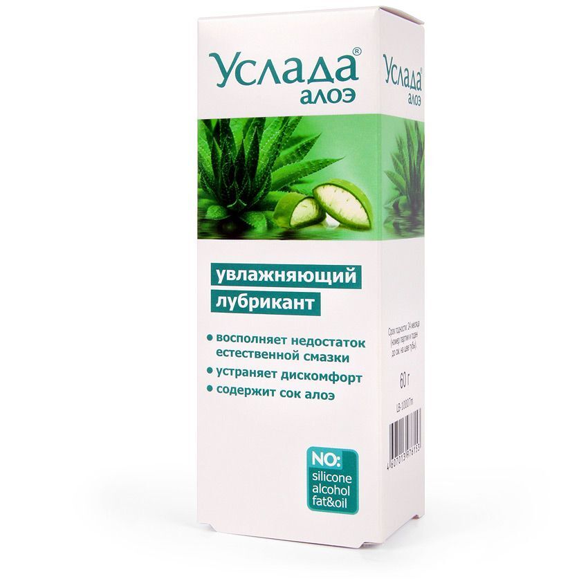 Увлажняющий лубрикант на водной основе Услада. Восполняет недостаток естественной смазки. Устраняет дискомфорт. Содержит сок алоэ.