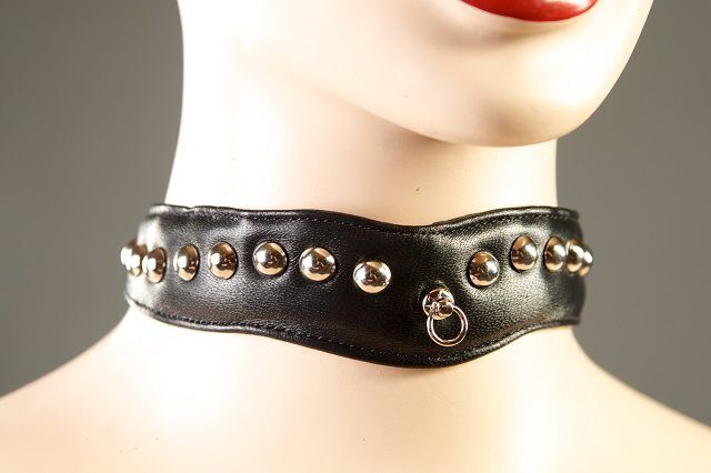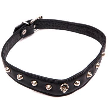 Ошейник декоративны - изысканный аксессуар из натуральной кожи,великолепно будет смотреться с вашим любым эротическим костюмом для сексуальных игр. Ошейник, украшенный колечком и сферическими заклепками, идеально подходит для повседневной носки. Минимальный обхват шеи - 34 см.,максимальный - 41 см.