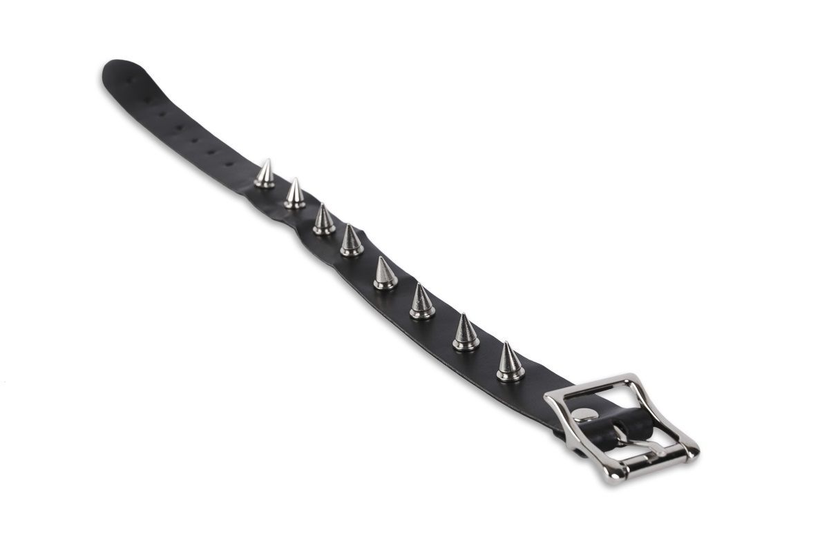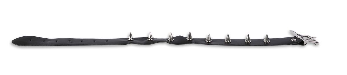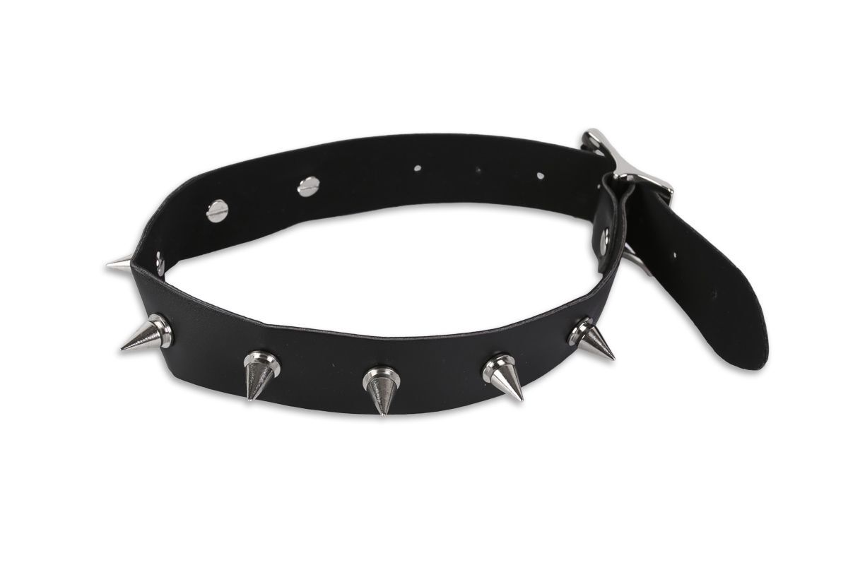 Сочетание блестящей кожи и сверкающего металла так заводит! Подарите себе и своему партнеру незабываемую игру БДСМ. Используйте незаменимый для этого атрибут – ошейник! Узкий аксессуар, выполненный из качественного кожзаменителя, понравится любителям брутальных образов. Ошейник украшен длинными и короткими шипами, расположенными попеременно по всей длине. Размер ошейника регулируется пряжкой. Максимальный обхват - 43 см. Ширина - 2,5 см.