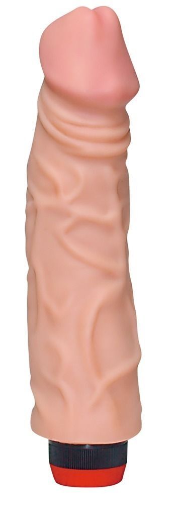 Вибратор телесного цвета. Рельефный, легко скользящий, с ярковыраженными венками, очень реалистичный. Полная имитация мужского полового органа. Вибратор многоскоростной, встроенный в основание пульт управления.