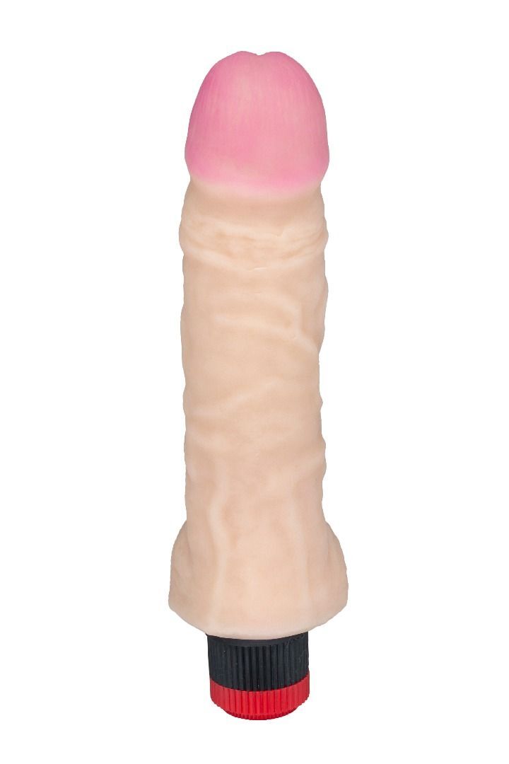 Вибромассажёр телесного цвета. Имеет форму члена с ярко выраженной головкой. Необычайно приятный, рельефный, выполненный из материала неоскин, передающий эффект мягкой реалистичной текстуры кожи, не имеет швов. Виброэлемент расположен по всей длине изделия. Степень вибрации регулируется при помощи кнопки, расположенной в основании. Рабочая длина - 15 см.