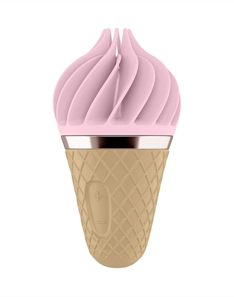 Нежная силиконовая игрушка для лучшей чувственной игры с клитором. Очаровательный дизайн в виде рожка мороженого и большая мощность вращения делают этот вибратор украшением вашей коллекции игрушек. Закругленный кончик состоит из нежных заостряющихся лепестков, которые стимулируют эрогенные зоны нежно, но настойчиво. Обольстительные программы из 4 ритмов и 3 скоростей вращения в каждую сторону провоцируют на громкие стоны. А полностью водонепроницаемая поверхность позволяет наслаждаться в разных местах - душе или расслабляющей ванне, по вашему желанию, Тихий, гипоаллергенный и водонепроницаемый, этот гаджет станет отличным помощником в достижении оргазмов!