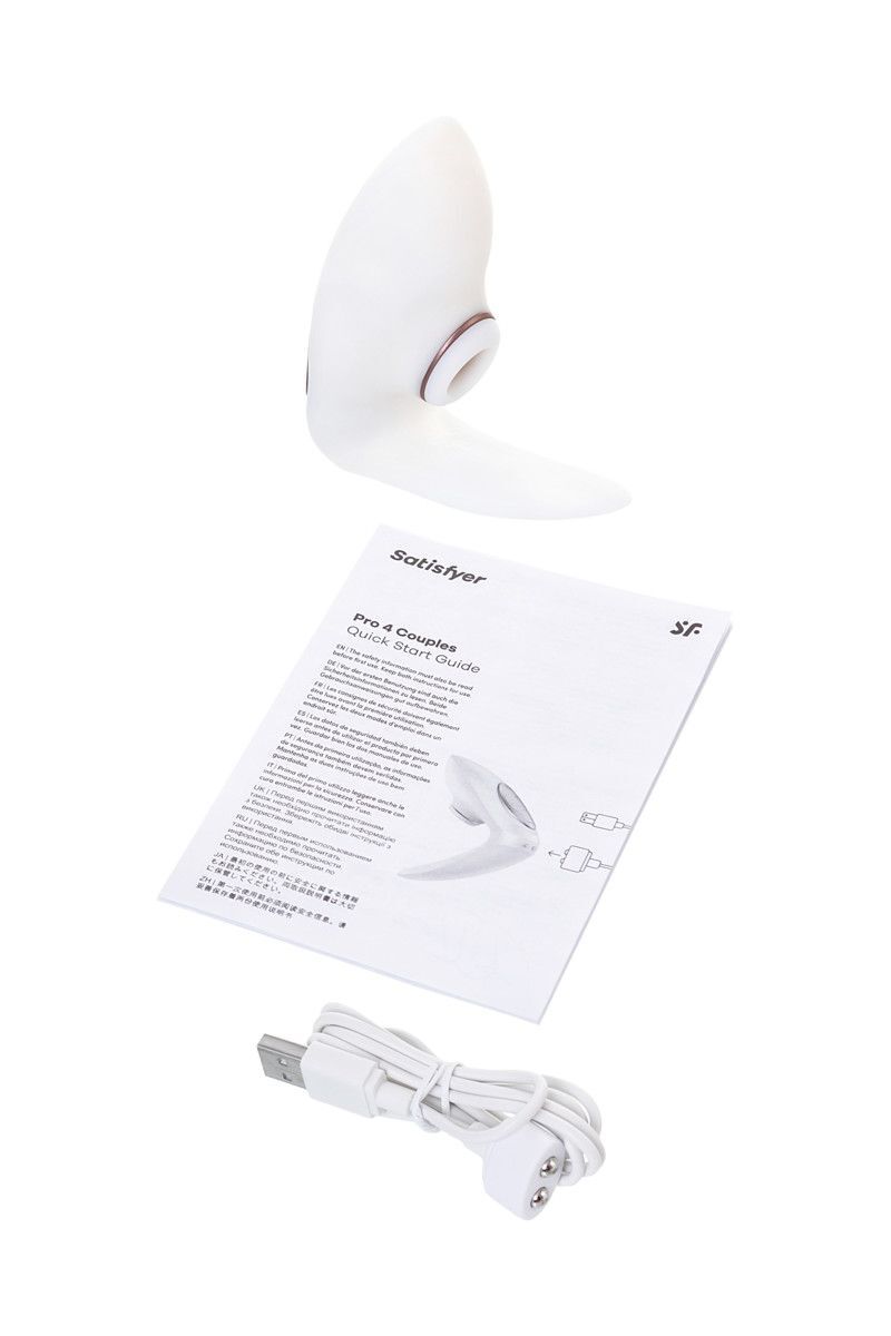 Satisfyer Pro 4 Couples - новое слово в мире игрушек для пар. Вибростимулятор погружается вагинально, даря 10 чувственных режимов вибрации, которую разделят оба партнера. Клиторальный отросток обеспечивает 11 режимов вакуумно-волновой бесконтактный стимуляции. Простое интуитивное управление позволяет создавать свои комбинации вибрации и вакуумно-волновой стимуляции. 2 мощных мотора. Магнитная USB зарядка в комплекте. Рабочая длина - 9 см. Важно! Девайс не является водонепроницаемым! Использование его в ванной или под душем недопустимо!