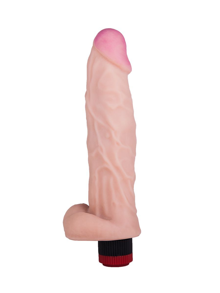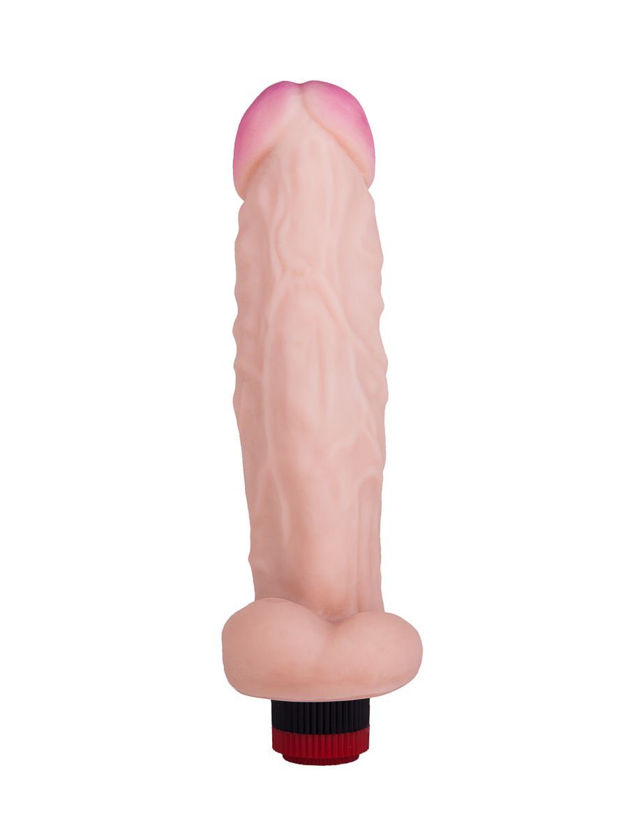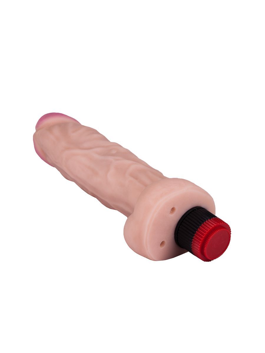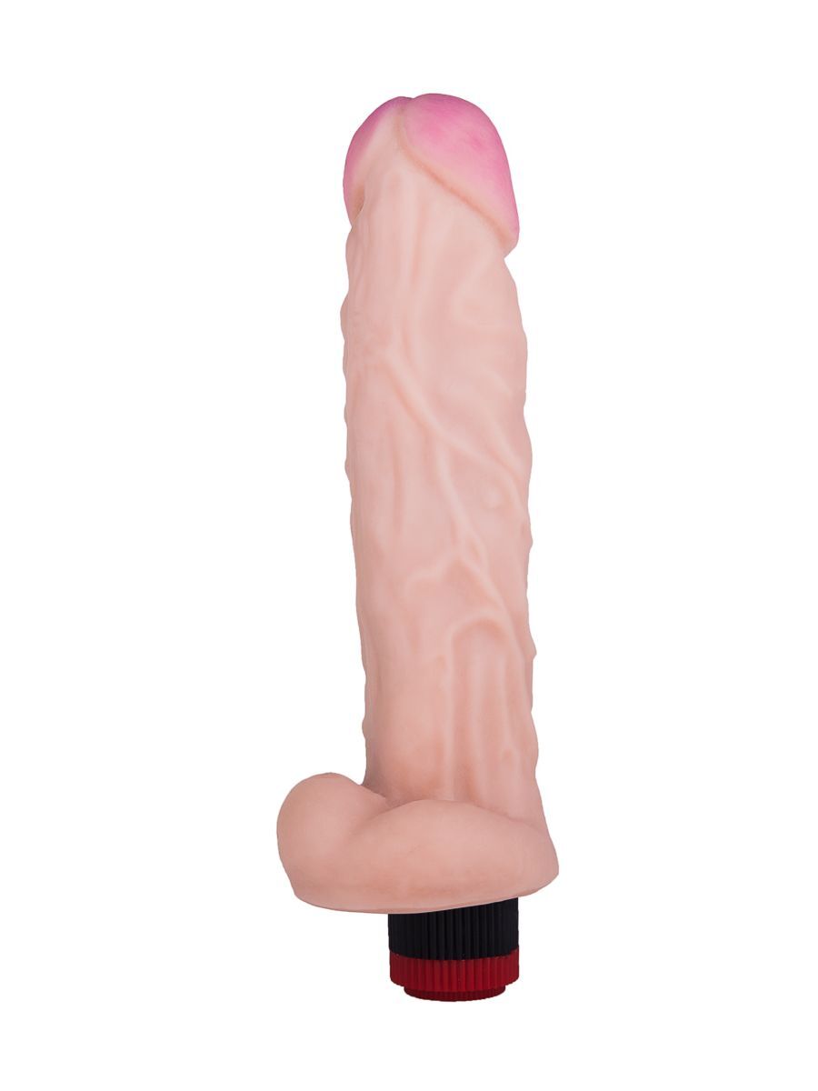 Вибромассажёр телесного цвета. Имеет форму члена с ярко выраженной головкой. Необычайно приятный, рельефный, выполненный из киберкожи, передающей эффект мягкой реалистичной текстуры кожи, не имеет швов. Виброэлемент расположен по всей длине изделия. Степень вибрации регулируется при помощи колесика, расположенного в основании. Рабочая длина - 20 см.
