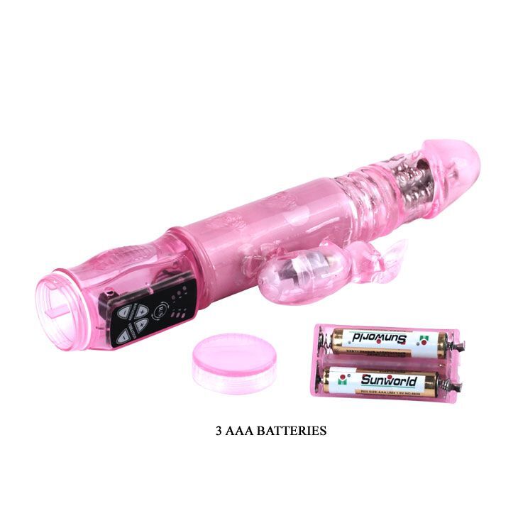Нежный гелевый вибратор розового цвета, имеет 3 уровня вибрации и пульсацию трех скоростей. Управление осуществляется при помощи панели управления в основании вибромассажера. Совершает возвратно-поступательные движения. Вибромассажер отличается оригинальным ребристым рельефом, который обеспечивает самую интенсивную стимуляцию интимных мышц. Забавный кролик, в форме которого выполнен клиторальный стимулятор, своими мягкими и эластичными ушками будет умело ласкать ваш клитор. Вибратор может как работать от батареек (3хААА, нет в комплекте), так и заряжаться от USB (провод в комплекте). Рабочая длина - 12,7 см. Длина клиторального отростка - 8 см.