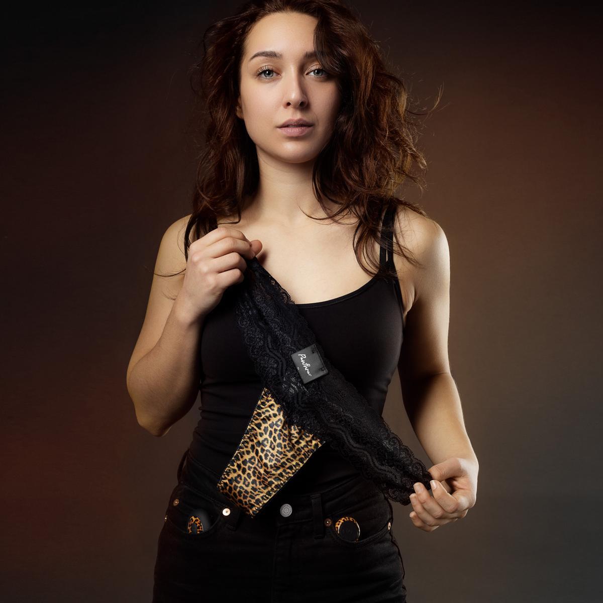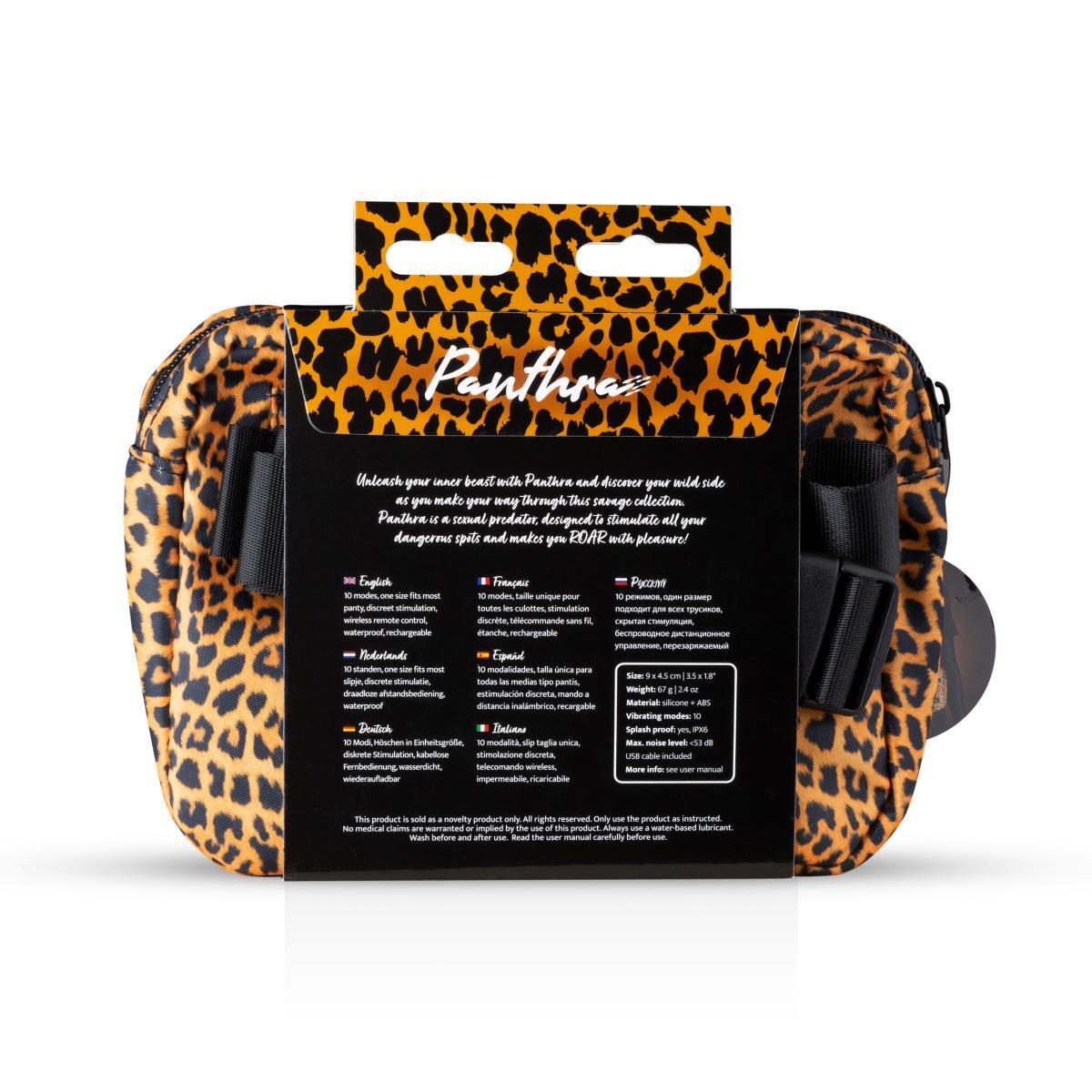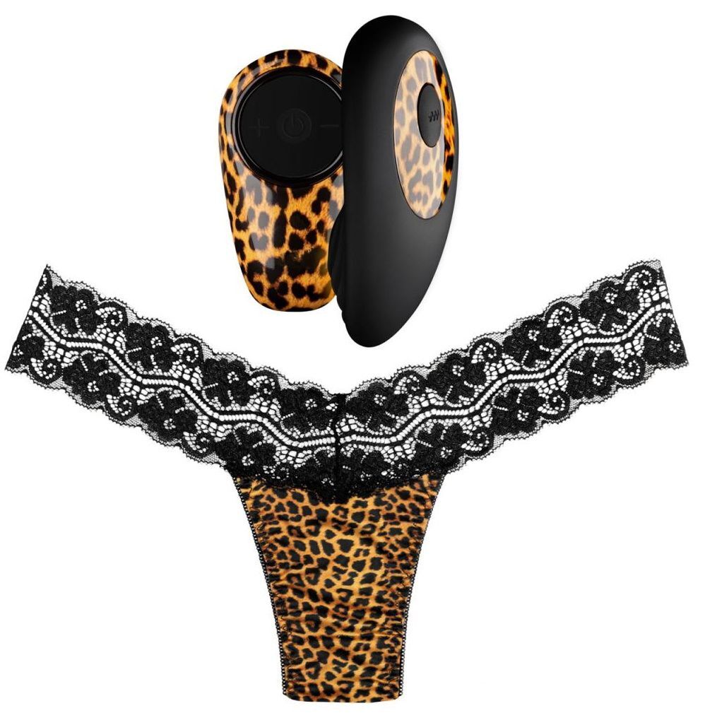 Tania – комплект из перезаряжаемого вибромассажера для стимуляции клитора и кружевных трусиков (универсального размера) со специальным кармашком для него. Удобный стимулятор имеет беспроводной пульт дистанционного управления. Трусики изготовлены из тонкого и мягкого материала, обеспечивающий комфорт ношения и хорошую посадку. На ластовице расположен специальный кармашек для вибромассажера. Данный комплект упакован в стильную леопардовую косметичку. Вибромассажер имеет 10 различных режимов вибрации. Включение осуществляется с помощью расположенной на вибромассажере кнопки включения/выключения. Чтобы включить или выключить игрушку, необходимо нажать и в течение трех секунд удерживать кнопку питания до момента, как стимулятор начнет вибрировать. Управление, изменение режима вибрации, осуществляется с помощью пульта. Он также дает возможность поставить стимуляцию на паузу, чтобы остановить вибрацию. Вибромассажер заряжается через USB. Поставляется в комплекте с косметичкой-сумочкой.
