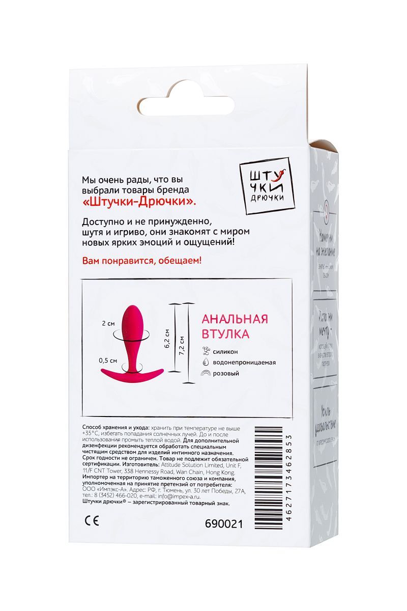 Ярко-розовая удлиненная анальная втулка - 7,2 см.