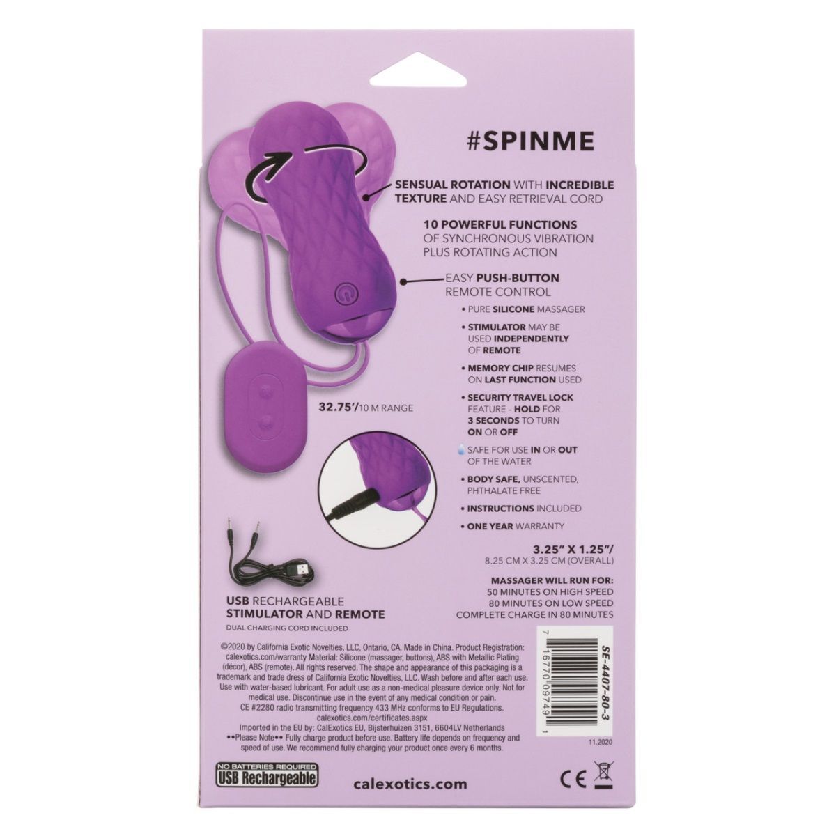 Slay #SpinMe – вагинальные виброшарики с усовершенствованным шнуром для извлечения. Поистине уникальный дизайн позволяет совершать вращательные движения. Этой игрушкой для взрослых с невероятной текстурой можно управлять с помощью пульта дистанционного управления или без него, поэтому данный девайс подходит для сольных игр и игр в паре, где можно дать своему партнеру возможность контролировать удовольствие на расстоянии до 10 метров. Виброшарики изготовлены из качественного медицинского силикона, поэтому совершенно безопасны для использования, а 10 мощных функций синхронной вибрации и вращательное действие гарантируют, что все потребности будут удовлетворены. Усовершенствованная, современная микросхема памяти сохранит последние использованные настройки и возобновит работу с последнего использованного режима. И стимулятор, и пульт дистанционного управления заряжаются от USB (с двойным зарядным кабелем в комплекте) и заряжаются всего за 90 минут. Девайс работает 80 минут на низкой скорости и 50 минут на максимально возможной мощности. Тренажер Кегеля, состоящий из двух шариков, специально разработан для повышения тонуса интимных мышц и снижения вероятности болезней мочеиспускательной системы. Гигиеничный ультрамягкий силикон высшего качества обеспечит удивительно приятную и гарантировано безопасную стимуляцию. Удобная веревочка позволит легко извлечь тренажер при необходимости в любой момент.