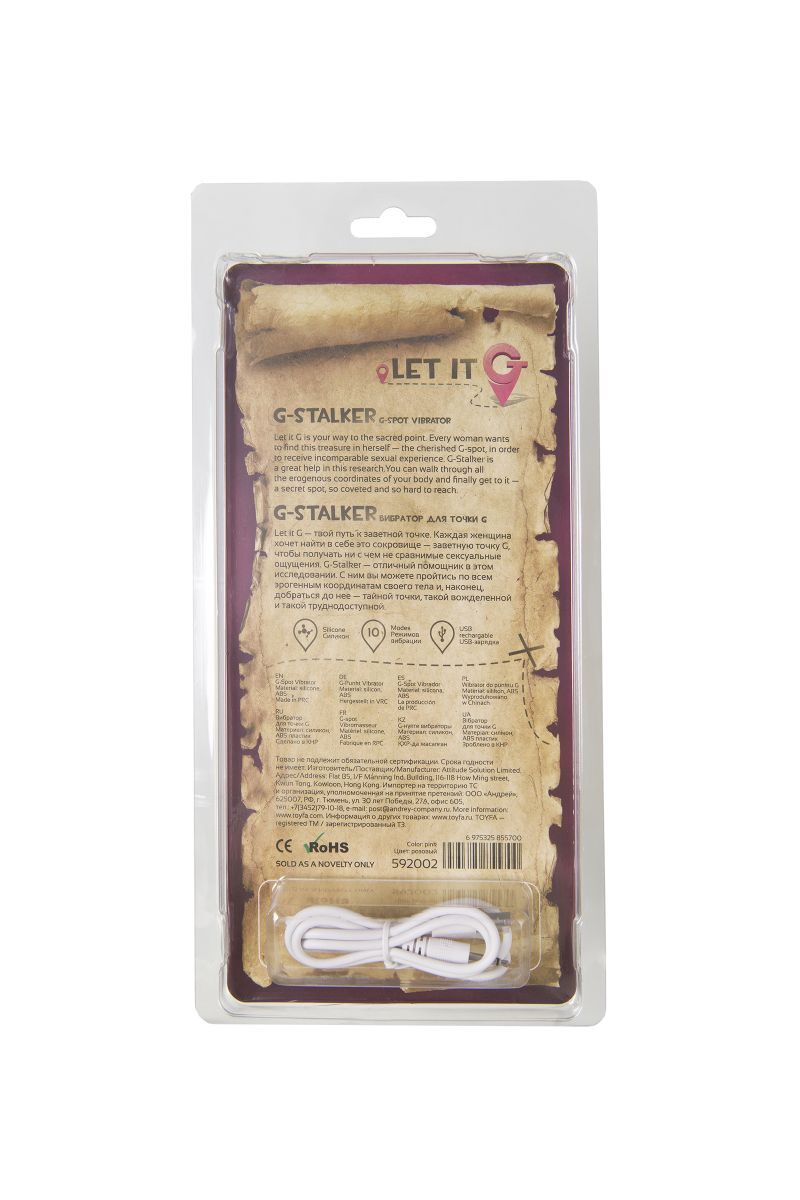 Let it G -твой путь к заветной точке. Каждая женщина хочет найти в себе это сокровище - заветную точку G, чтобы получать ни с чем не сравнимые сексуальные ощущения. G-Stalker отличный помощник в этом исследовании. С ним вы можете пройтись по всем эрогенным координатам своего тела и наконец добраться до нее - тайной точки, такой вожделенной и такой труднодоступной. Рабочая длина - 15 см. Минимальный диаметр - 1,6 см.