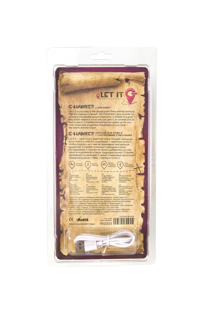 Let it G -твой путь к заветной точке. Каждая женщина хочет найти в себе это сокровище - заветную точку G, чтобы получать ни с чем не сравнимые сексуальные ощущения. G-Hawker отличный помощник в этом исследовании. С ним вы не просто доберетесь до нее, такой вожделенной и такой труднодоступной, G-Hawker одновременно разбудит 2 самые отзывчивые эрогенные координаты вашего тела - клитор и точку G. Рабочая длина - 13 см. Минимальный диаметр - 1,5 см.
