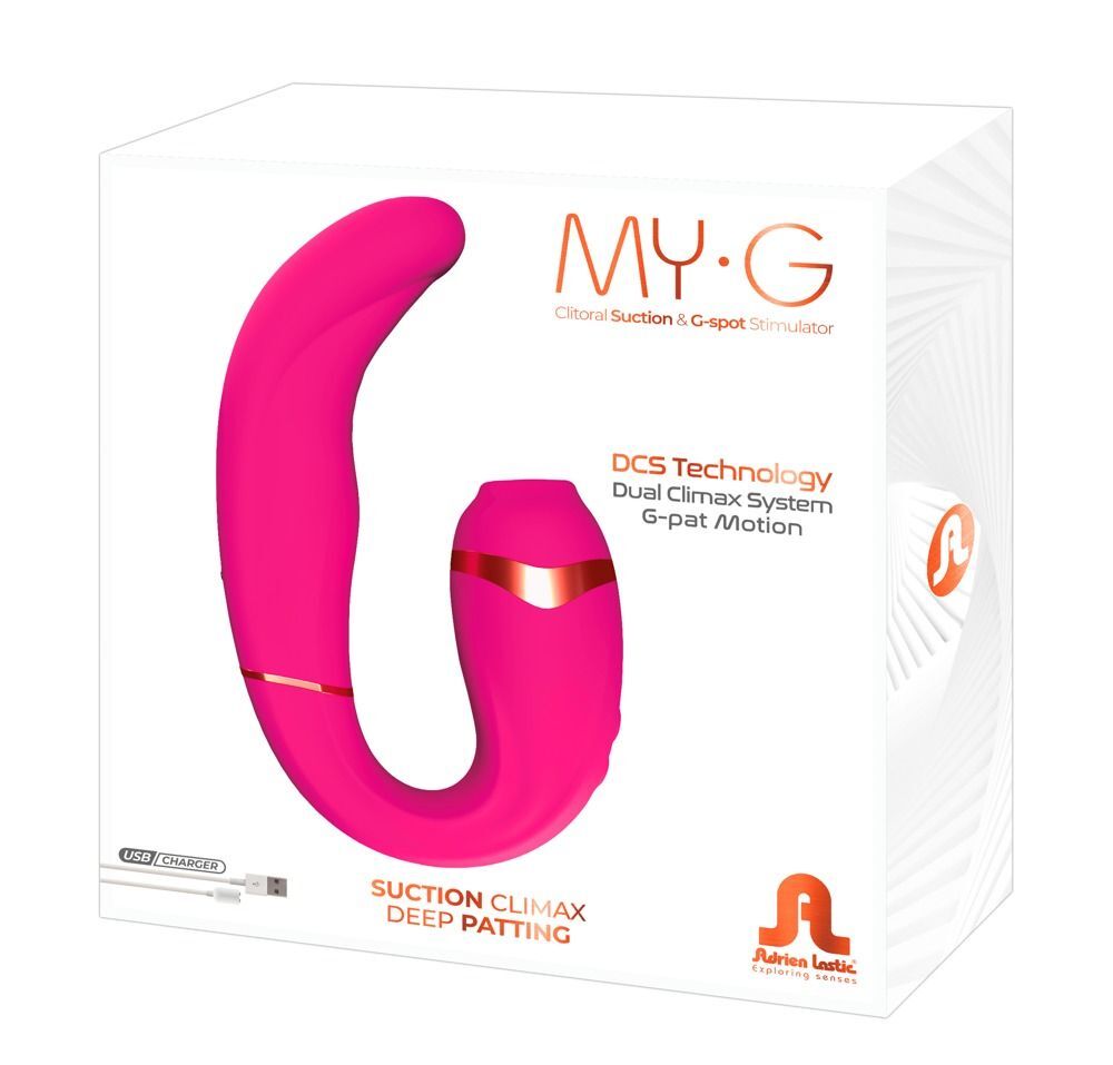 My G — это игрушка с двойной стимуляции. С помощью новой технологии Dual Climax System My-G обладает уникальными и новыми движениями, идеально подходящими для стимуляции точки G. Производитель использует современные технологии, которые позволили создать игрушку с новым типом всасывания. Adrien Lastic рекомендует использовать смазки на водной основе для легкого и гладкого введения всех силиконовых изделий. Не используйте силиконовые смазки, масла или крема с содержанием силикона, так как они могут разрушить материал изделия, ограничивая его эксплуатационные качества и период пользования.