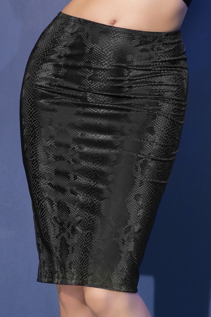 Юбка-карандаш сшита из эластичной ткани со змеиным принтом, сзади молния.