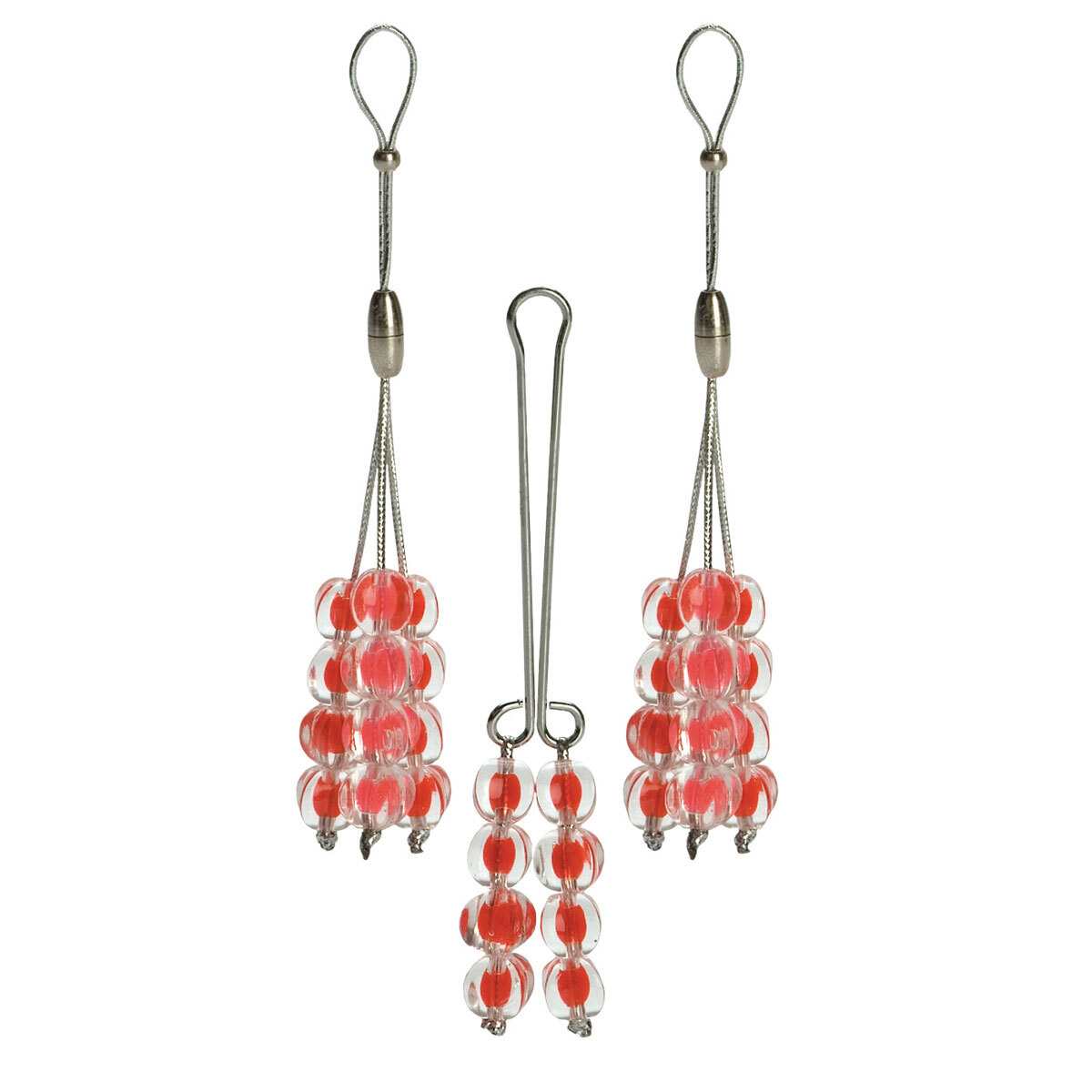 Чтобы выглядеть невероятно сексуальной, вам нужно не эротическое бельё, а кое-что погорячее. Например, этот оригинальный набор украшений с красными бусинами. Два лассо на соски, маленький зажим на клитор, и мужчина обязательно восхитится красотой и нежностью ваших чувствительных местечек!