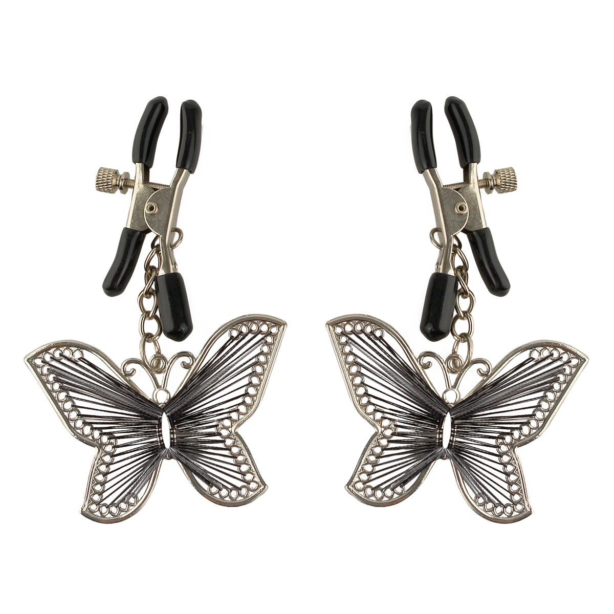 Сжимайте соски как можно крепче с зажимами Butterfly Nipple Clamps. С их помощью не только ощущения стремительно взлетят, но и Ваша сексуальность будет подчеркнута невероятно ярко. Зажимы для сосков имеют специальную систему фиксации, благодаря которой отрегулировать степень давления невероятно просто. Так как на кончиках зажимов расположены смягчающие насадки, даже при самой высокой степени сжатия ощущения будут действительно приятными.