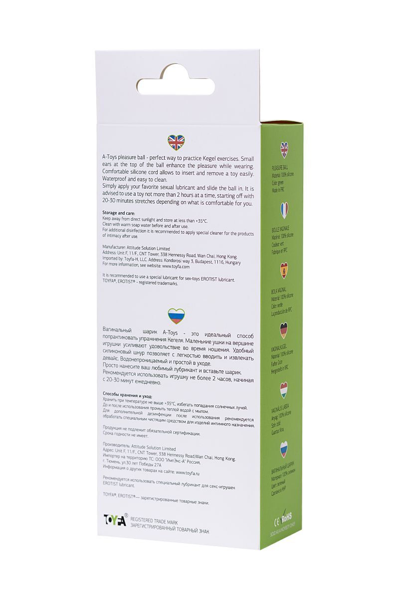 Зеленый силиконовый вагинальный шарик A-Toys с ушками