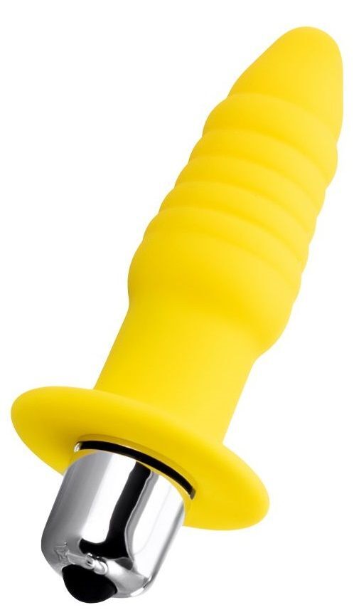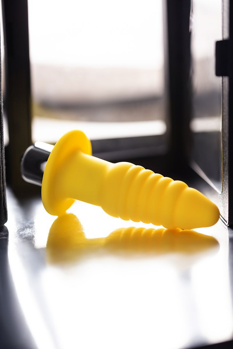 Ребристая коническая анальная вибровтулка. Рабочая длина - 9 см. Минимальный диаметр - 2 см.