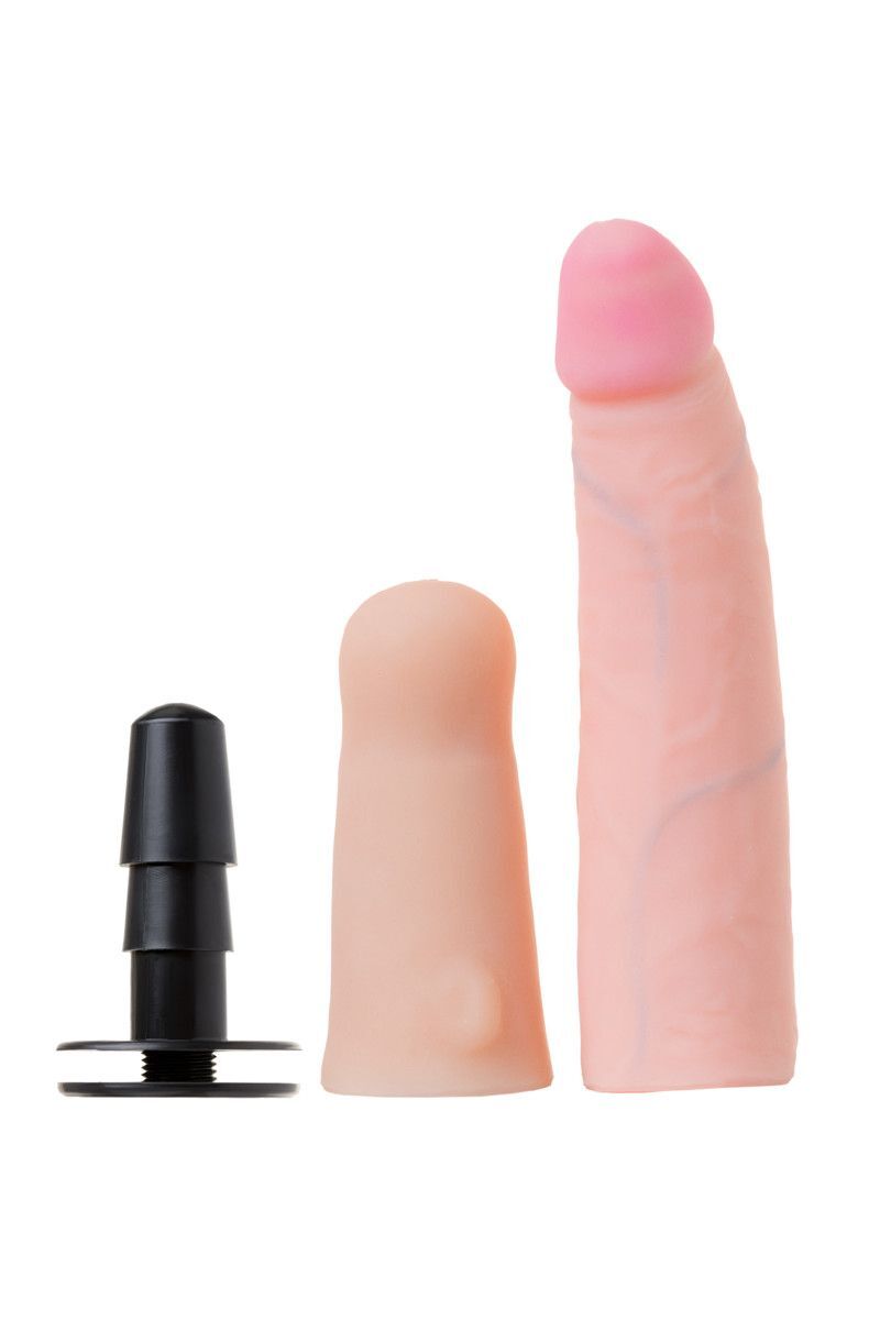 Двойной фаллоимитатор на поясе для женщин. Изготовлен из материала неоскин - новое поколение кибер-кожи . Насадка для страпона телесного цвета. Имеет форму члена с ярко выраженной головкой, рельефный, не имеет швов. Пояс снабжен регулируемой вагинальной насадкой, позволяющей адаптировать размеры пояса с индивидуальными особенностями тела женщины. Соединительные параметры стандартны. Длина вагинальной пробки - 10 см., диаметр - 3,5 см.