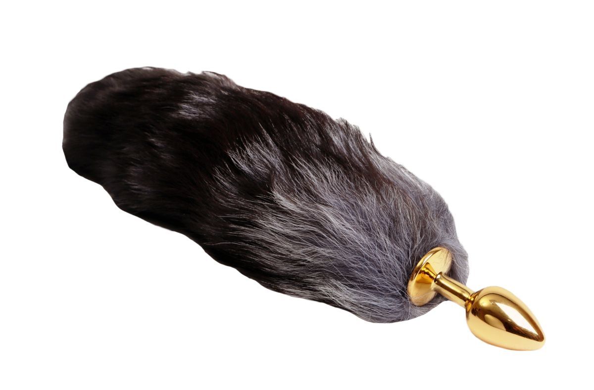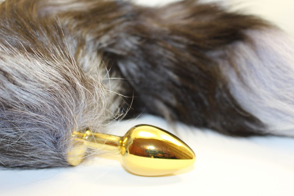 Золотистая анальная пробка с хвостиком. Имеет ограничительное основание для безопасного использования. Рабочая длина - 6,5 см. Длина хвоста - 40 см.