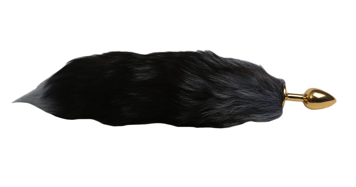 Золотистая анальная пробка с чёрным лисьим хвостом