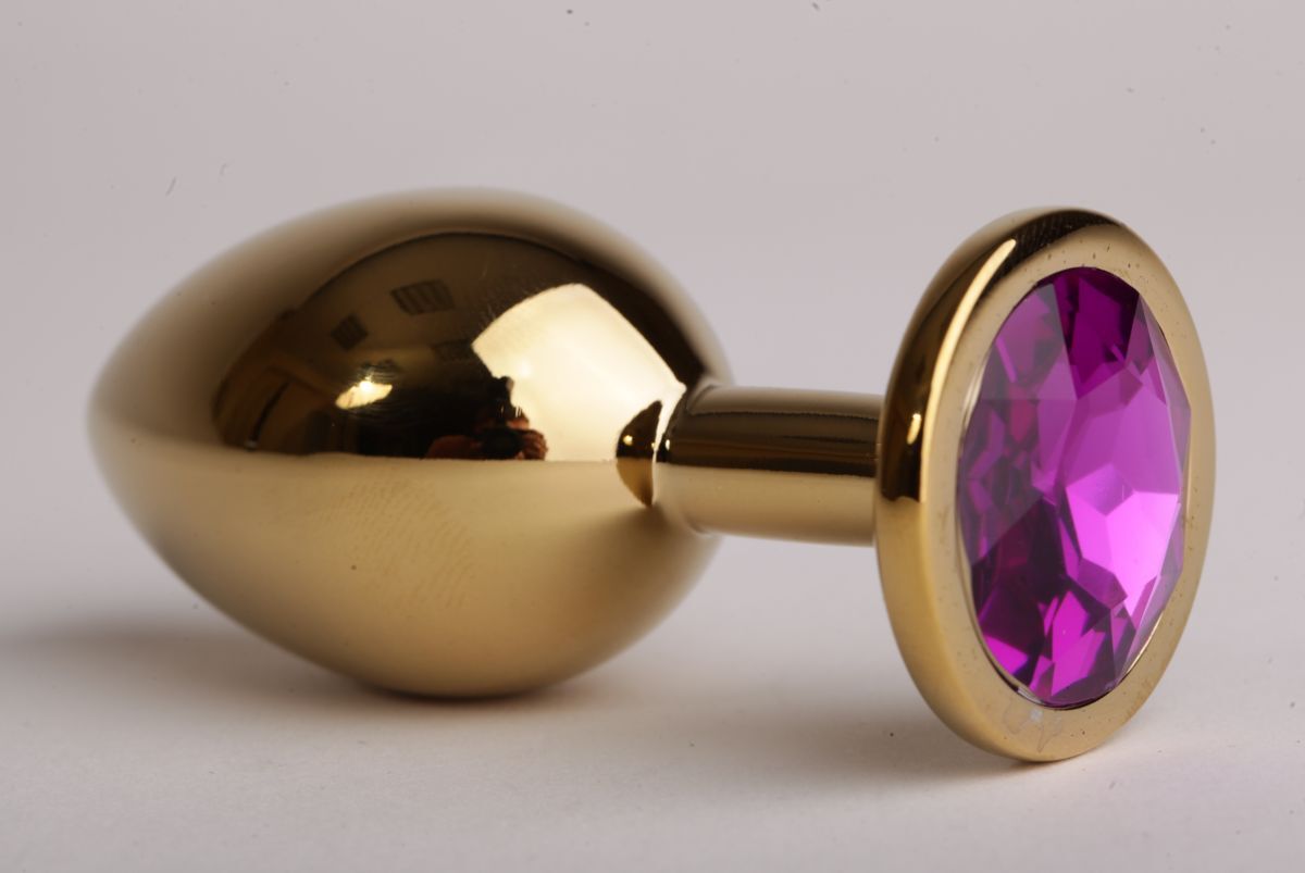 Золотистая анальная пробка с фиолетовым кристаллом - 9,5 см.