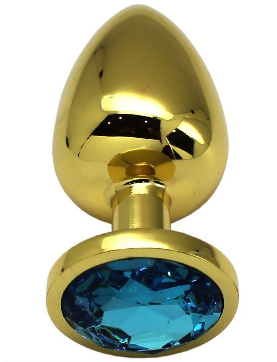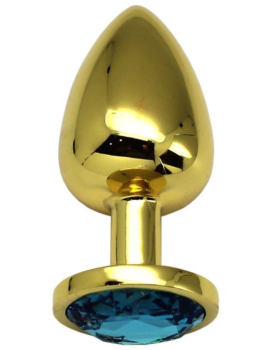 Золотистая анальная пробка с голубым кристаллом - 9 см.