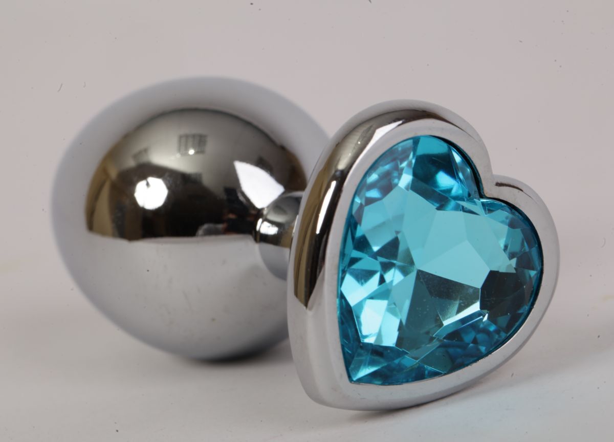 Золотистая анальная пробка с голубым стразиком-сердечком - 8 см.