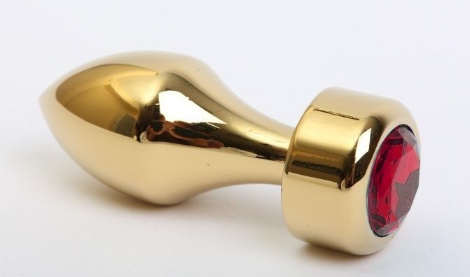 Золотистая анальная пробка с широким основанием и красным кристаллом - 7,8 см.
