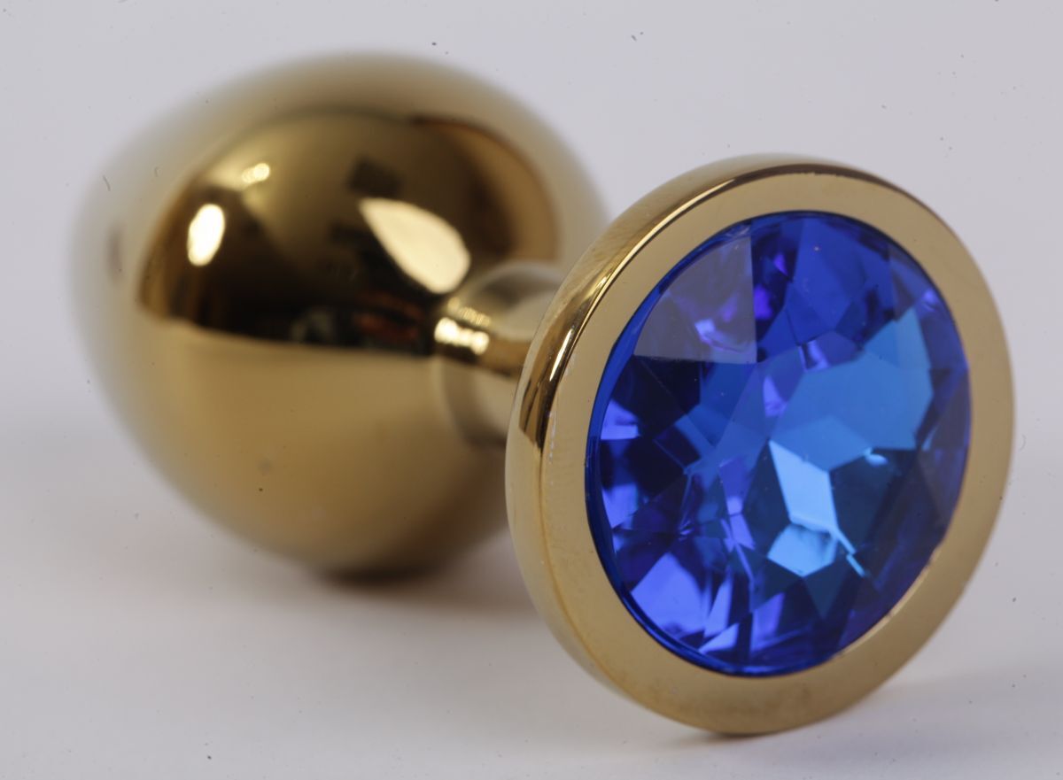 Золотистая анальная пробка с синим кристаллом - 9,5 см.