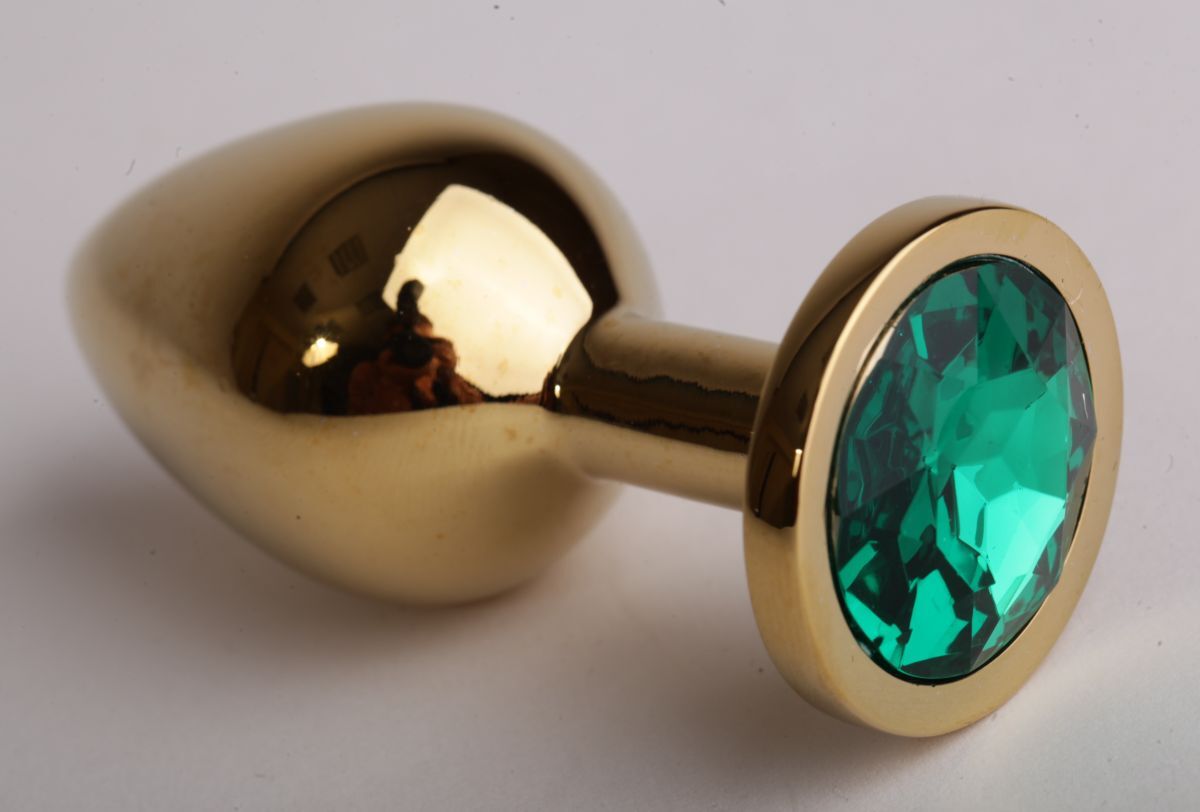 Золотистая анальная пробка с зеленым кристаллом - 8,2 см.