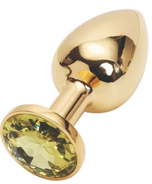 Золотистая анальная пробка с желтым кристаллом - 8,2 см.