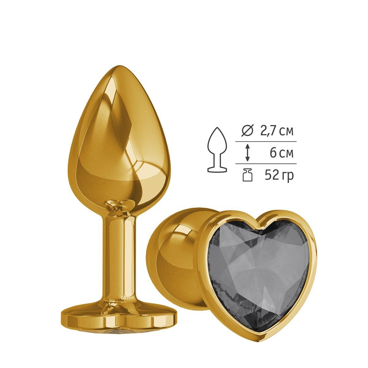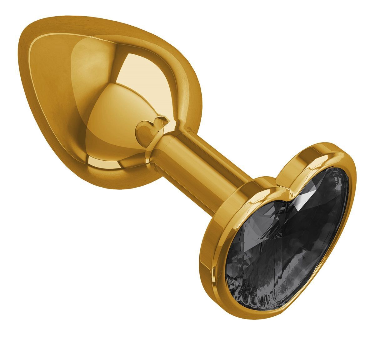 Золотистая анальная втулка с чёрным кристаллом-сердцем - 7 см.