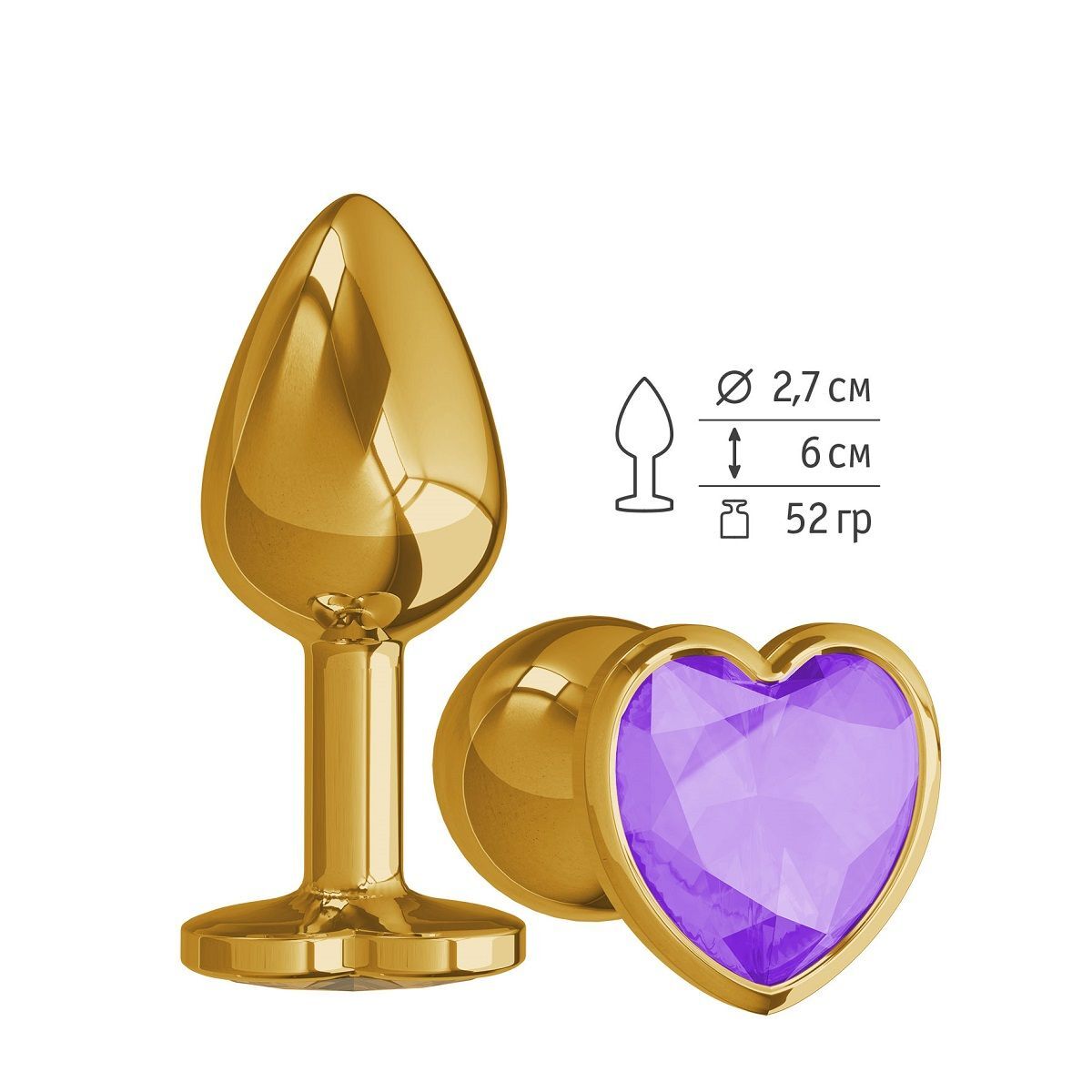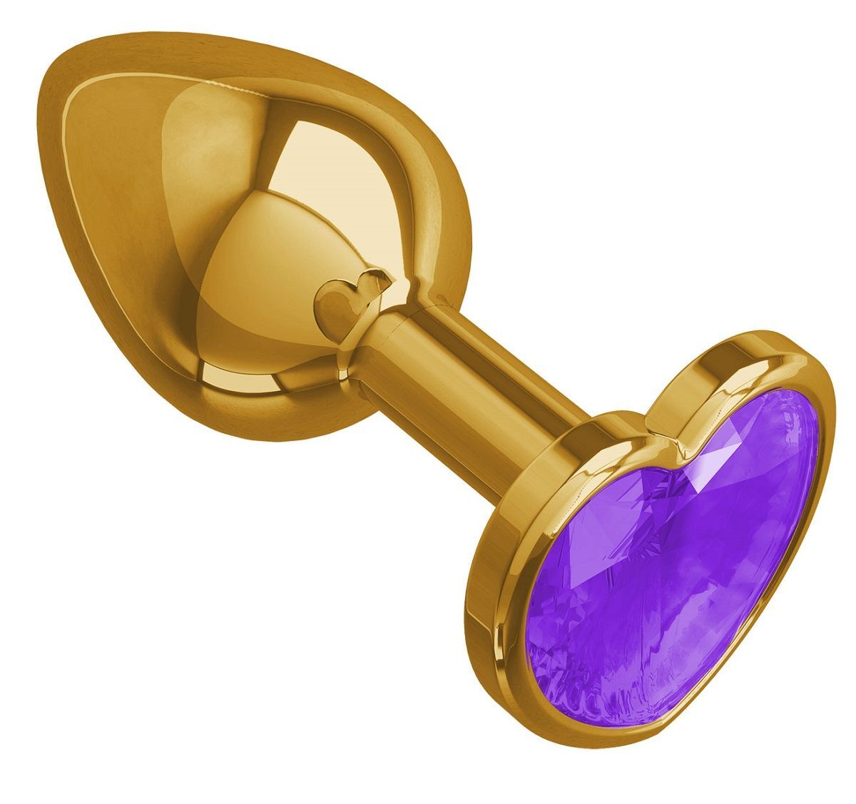 Золотистая анальная втулка с фиолетовым кристаллом-сердцем - 7 см.