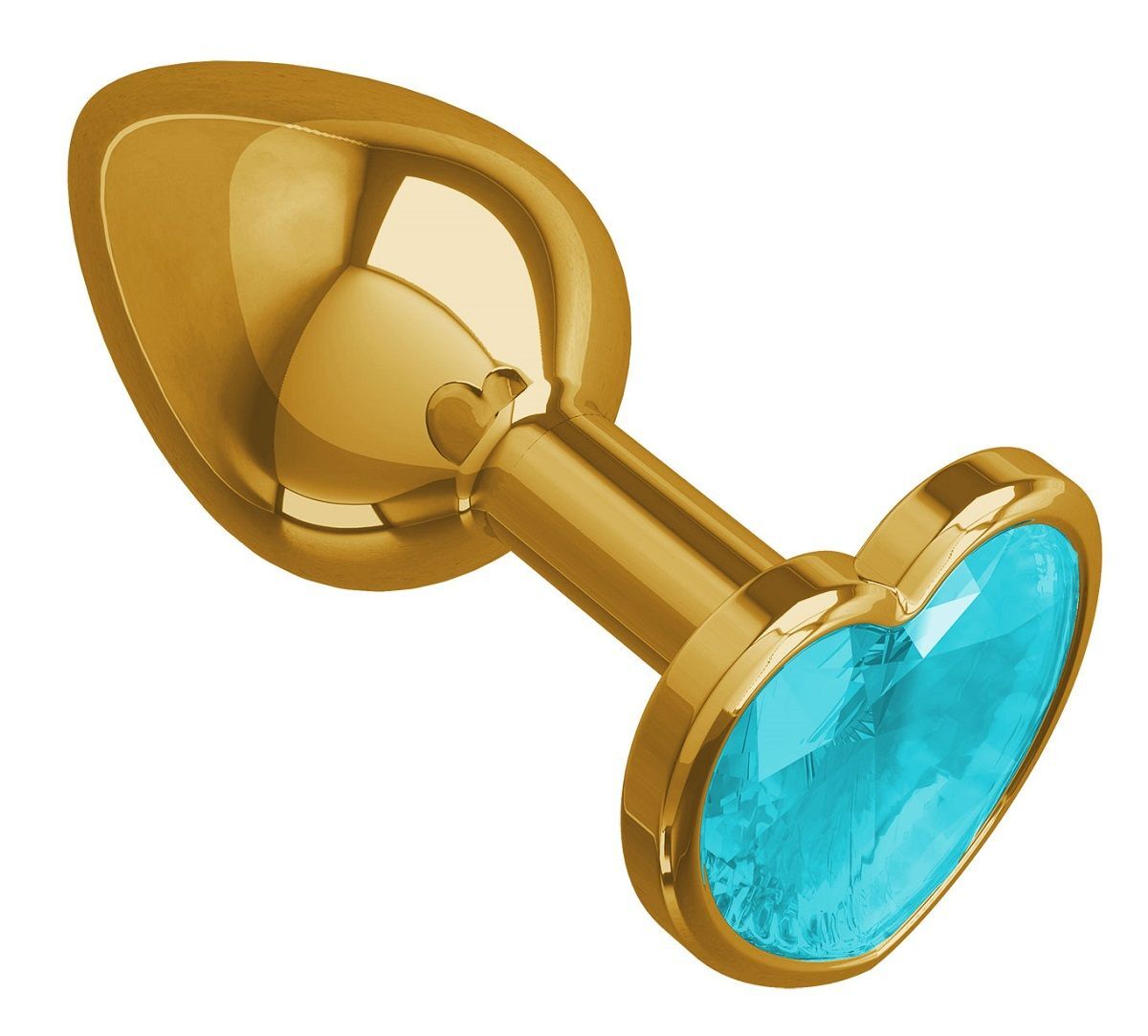 Золотистая анальная втулка с голубым кристаллом-сердцем - 7 см.