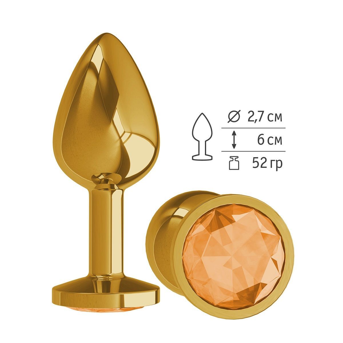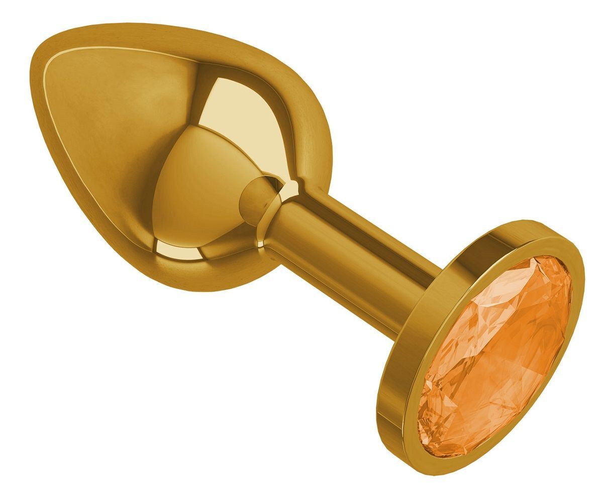 Золотистая анальная втулка с оранжевым кристаллом - 7 см.