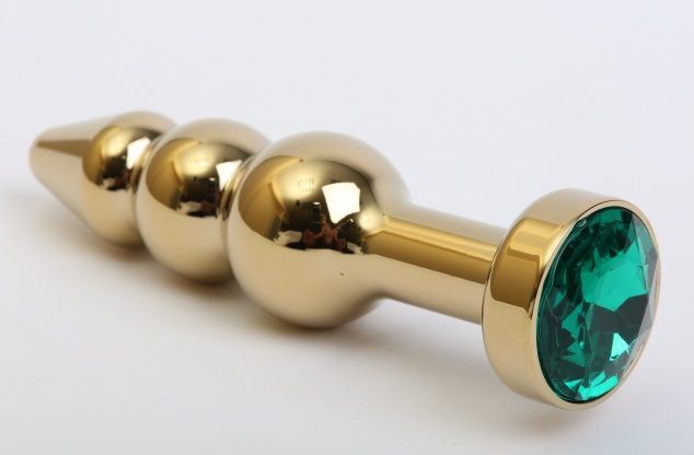 Золотистая анальная ёлочка с зеленым кристаллом - 11,2 см.