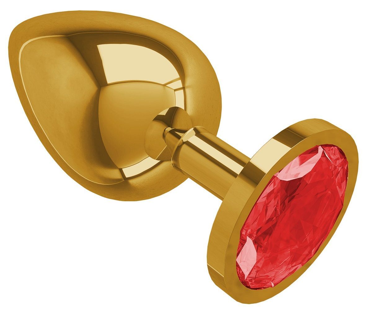 Золотистая большая анальная пробка с красным кристаллом - 9,5 см.