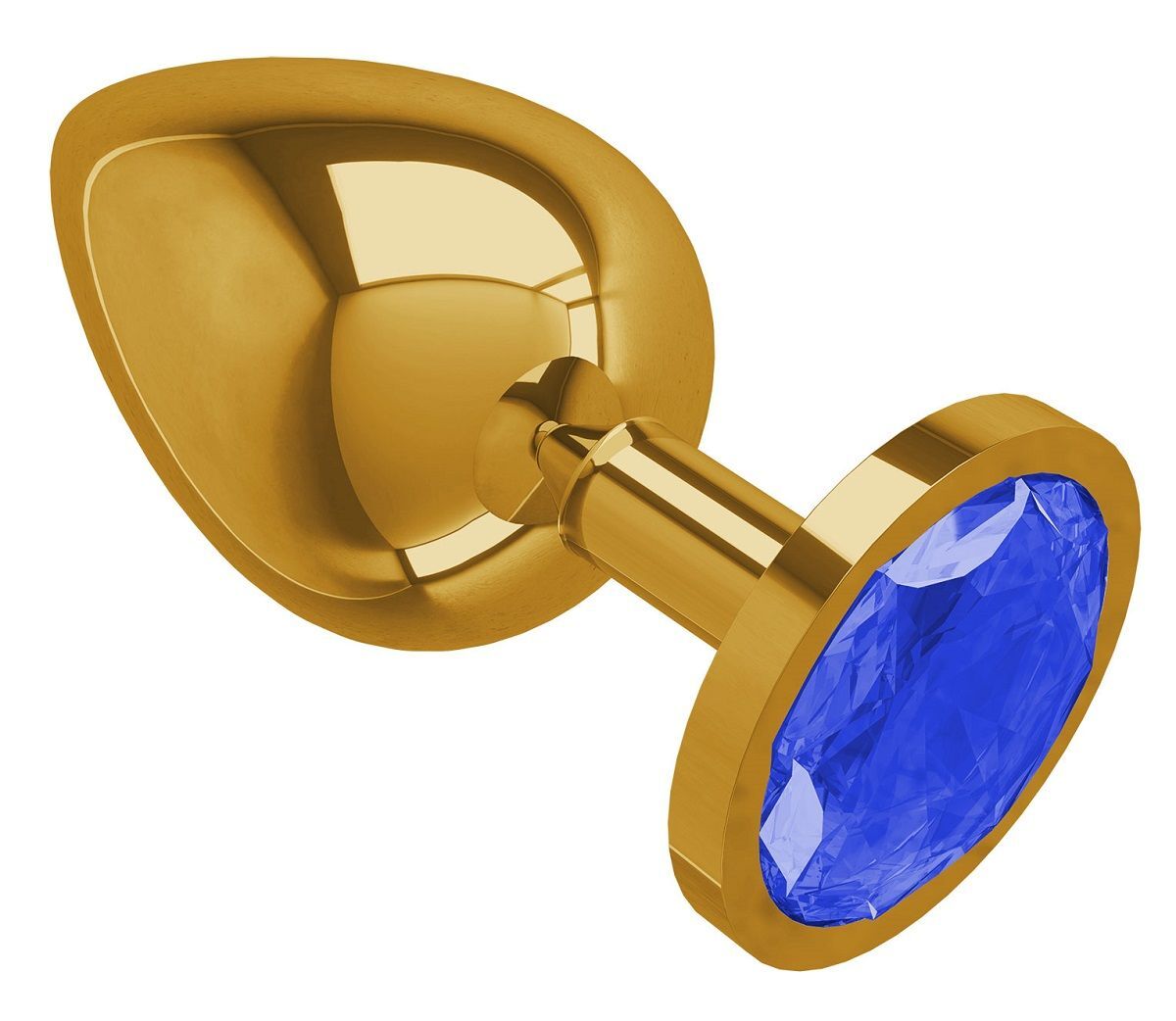 Золотистая большая анальная пробка с синим кристаллом - 9,5 см.