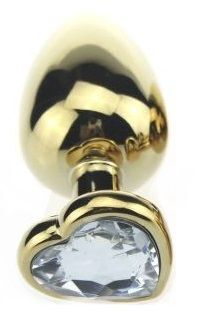 Золотистая пробка с прозрачным кристаллом-сердечком - 7,5 см.