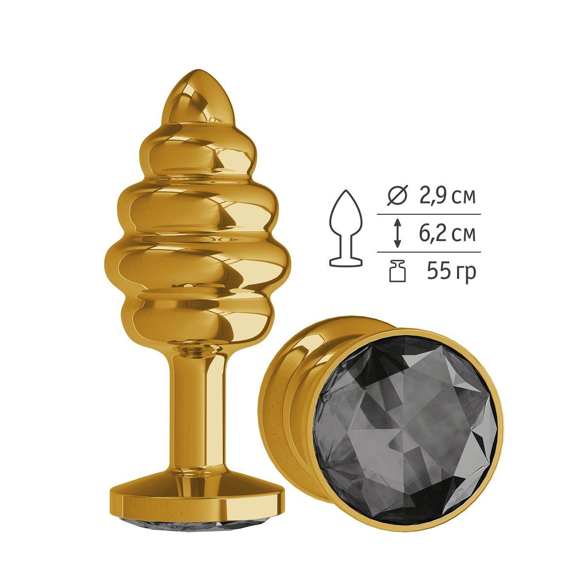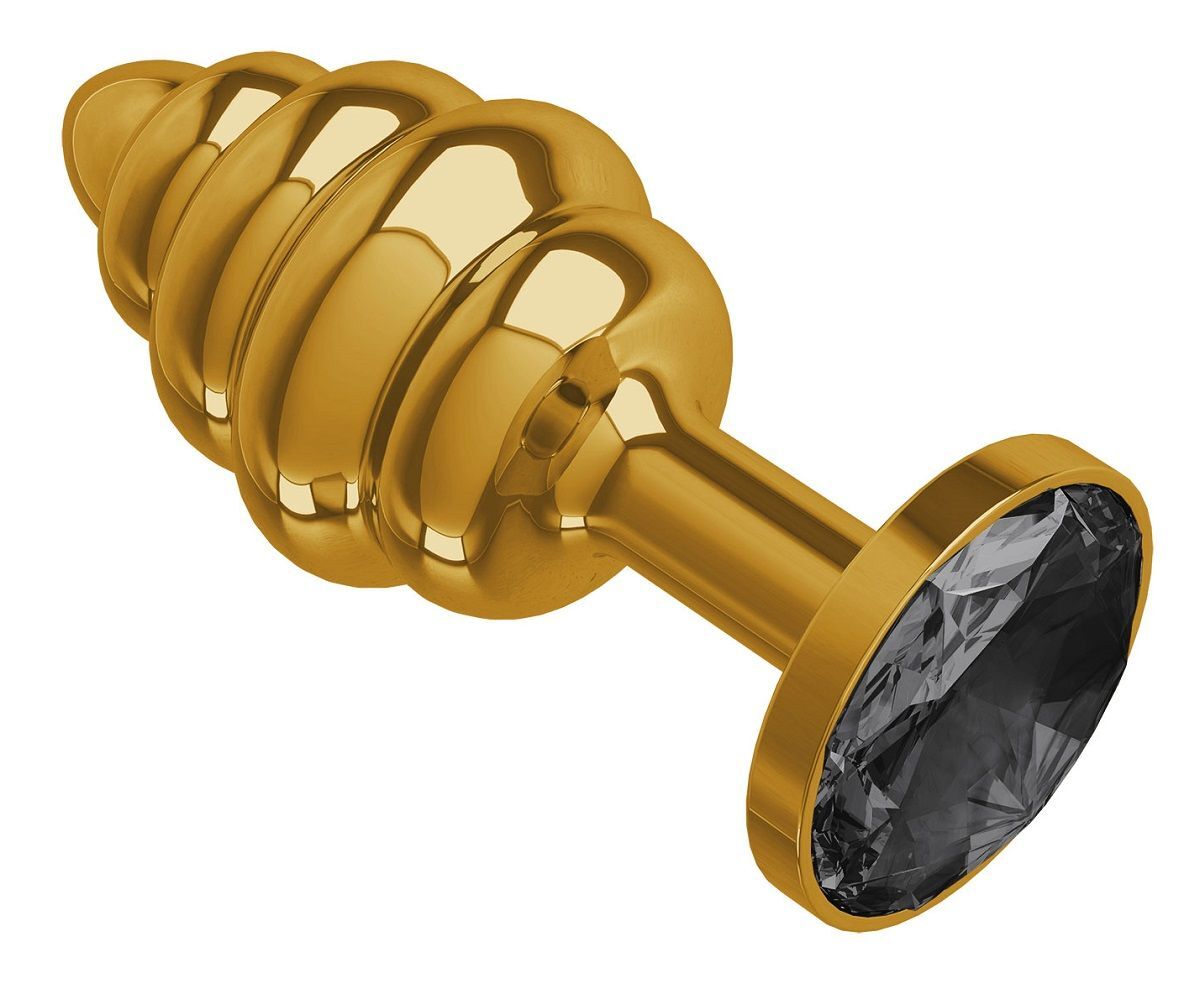 Золотистая пробка с рёбрышками и черным кристаллом - 7 см.