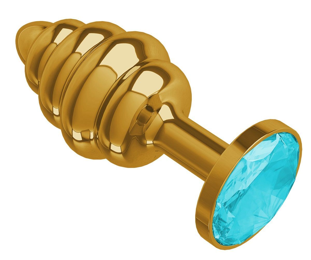Золотистая пробка с рёбрышками и голубым кристаллом - 7 см.