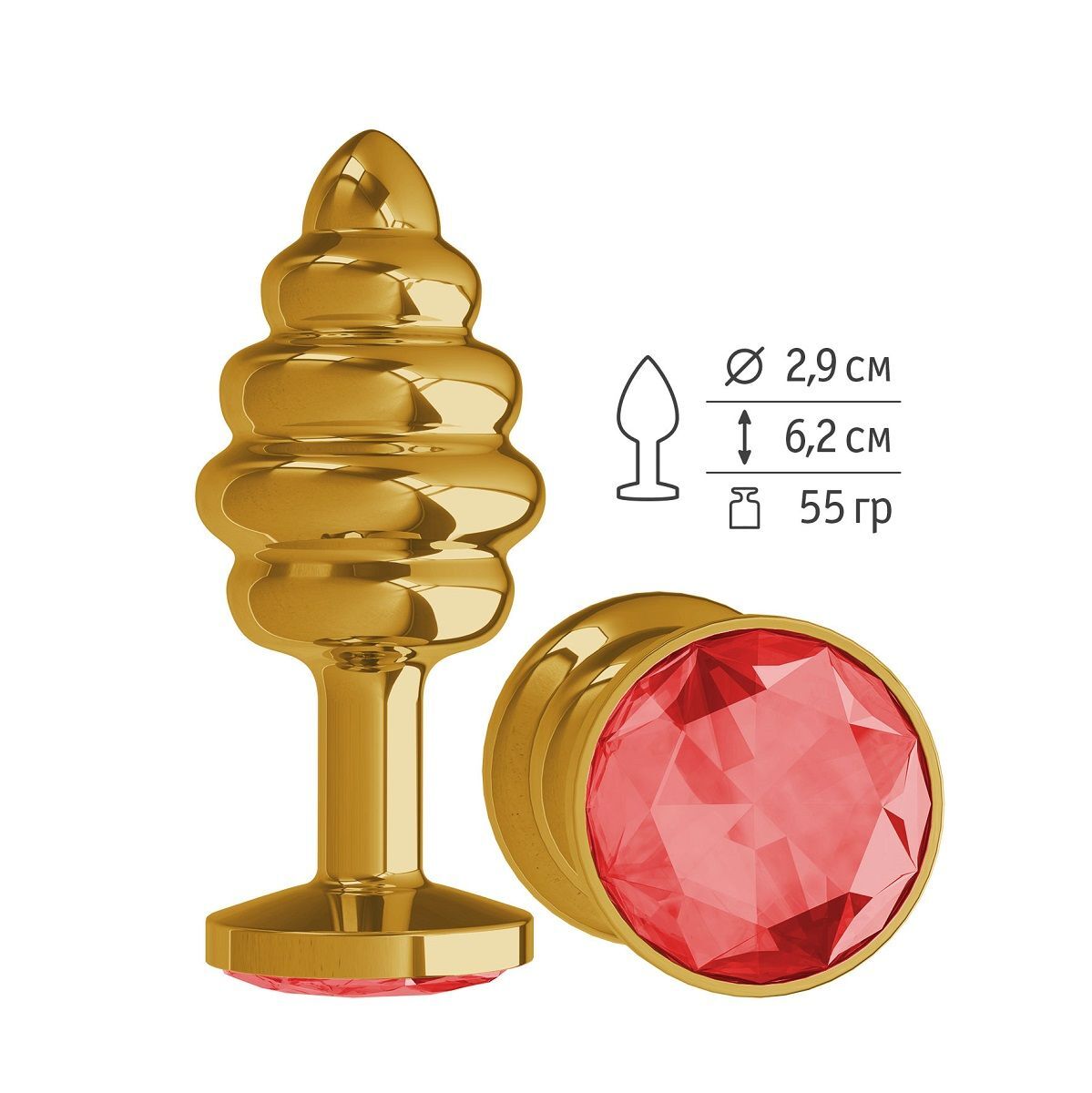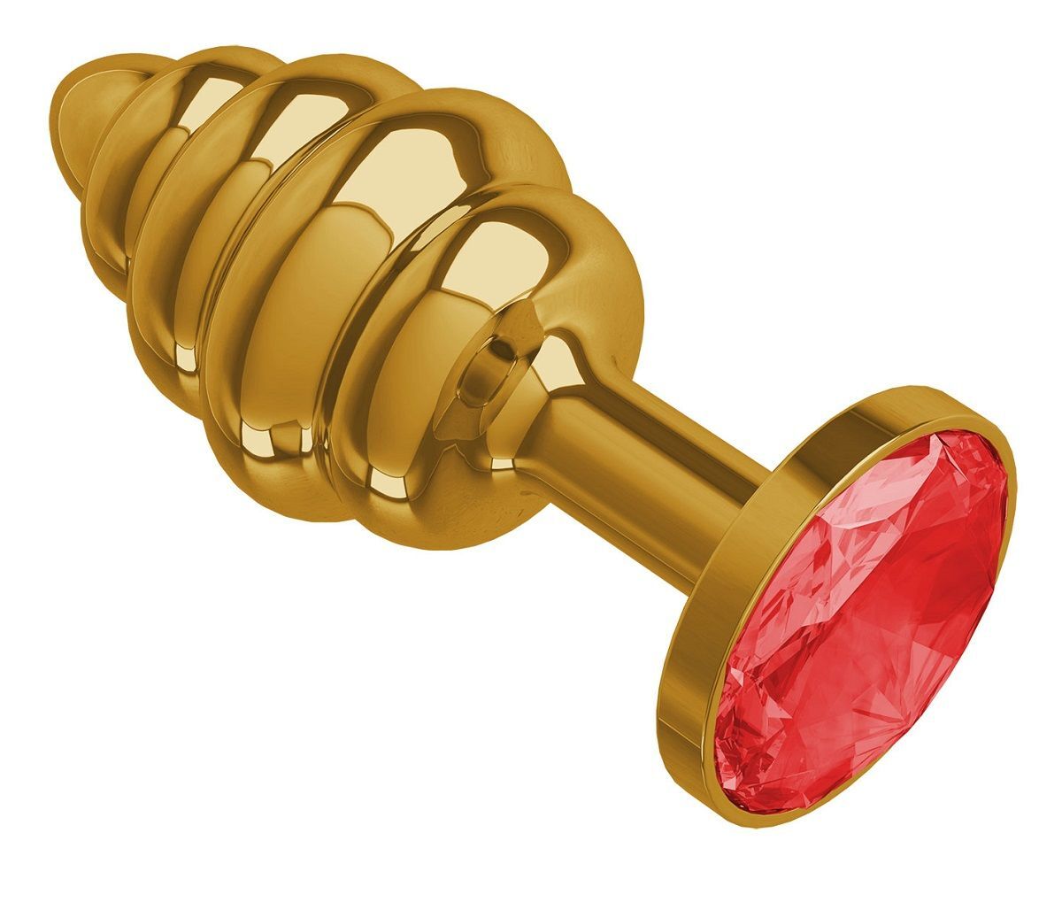 Золотистая пробка с рёбрышками и красным кристаллом - 7 см.
