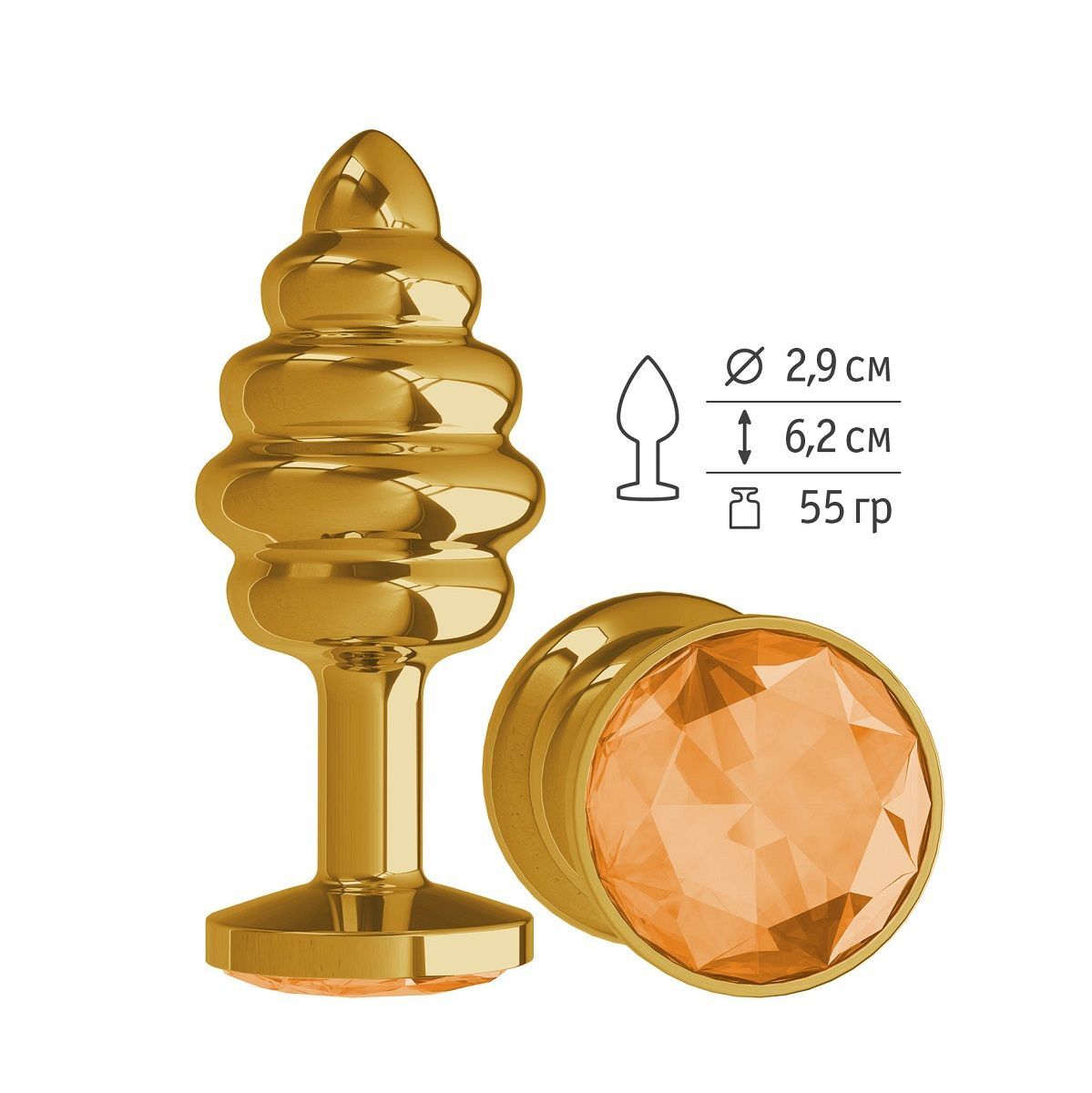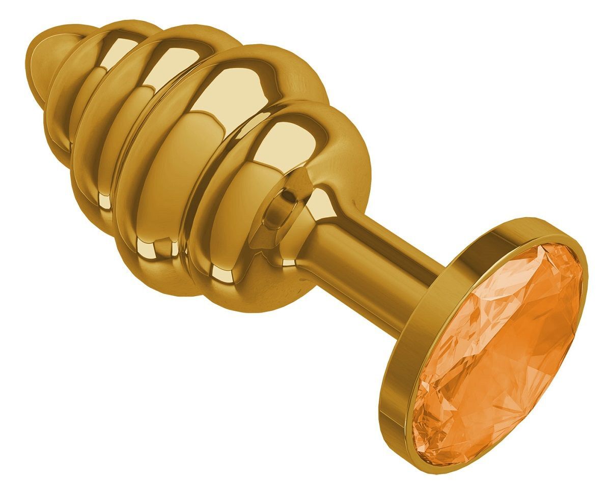 Золотистая пробка с рёбрышками и оранжевым кристаллом - 7 см.