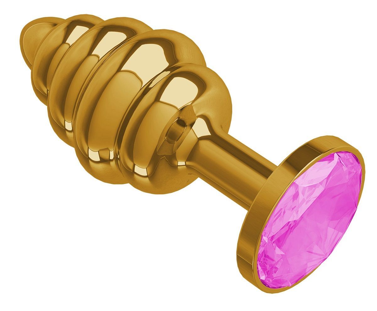 Золотистая пробка с рёбрышками и розовым кристаллом - 7 см.