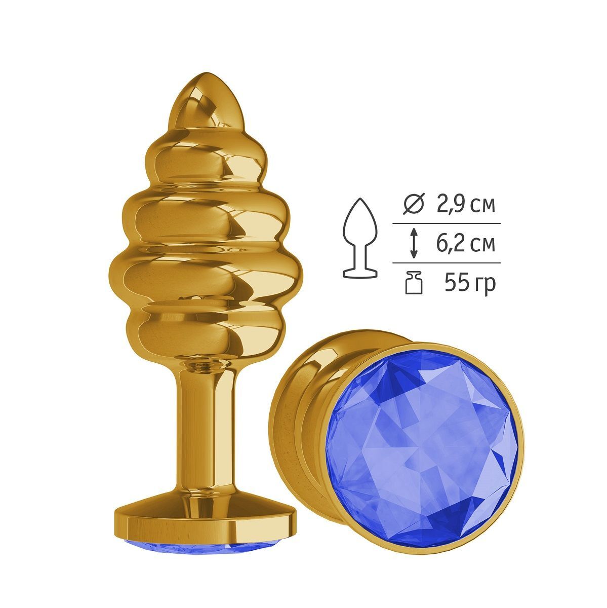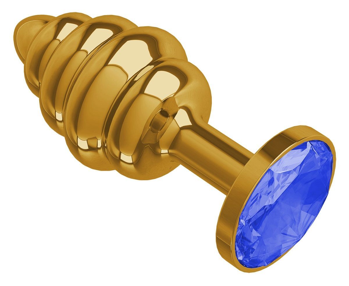 Золотистая пробка с рёбрышками и синим кристаллом - 7 см.