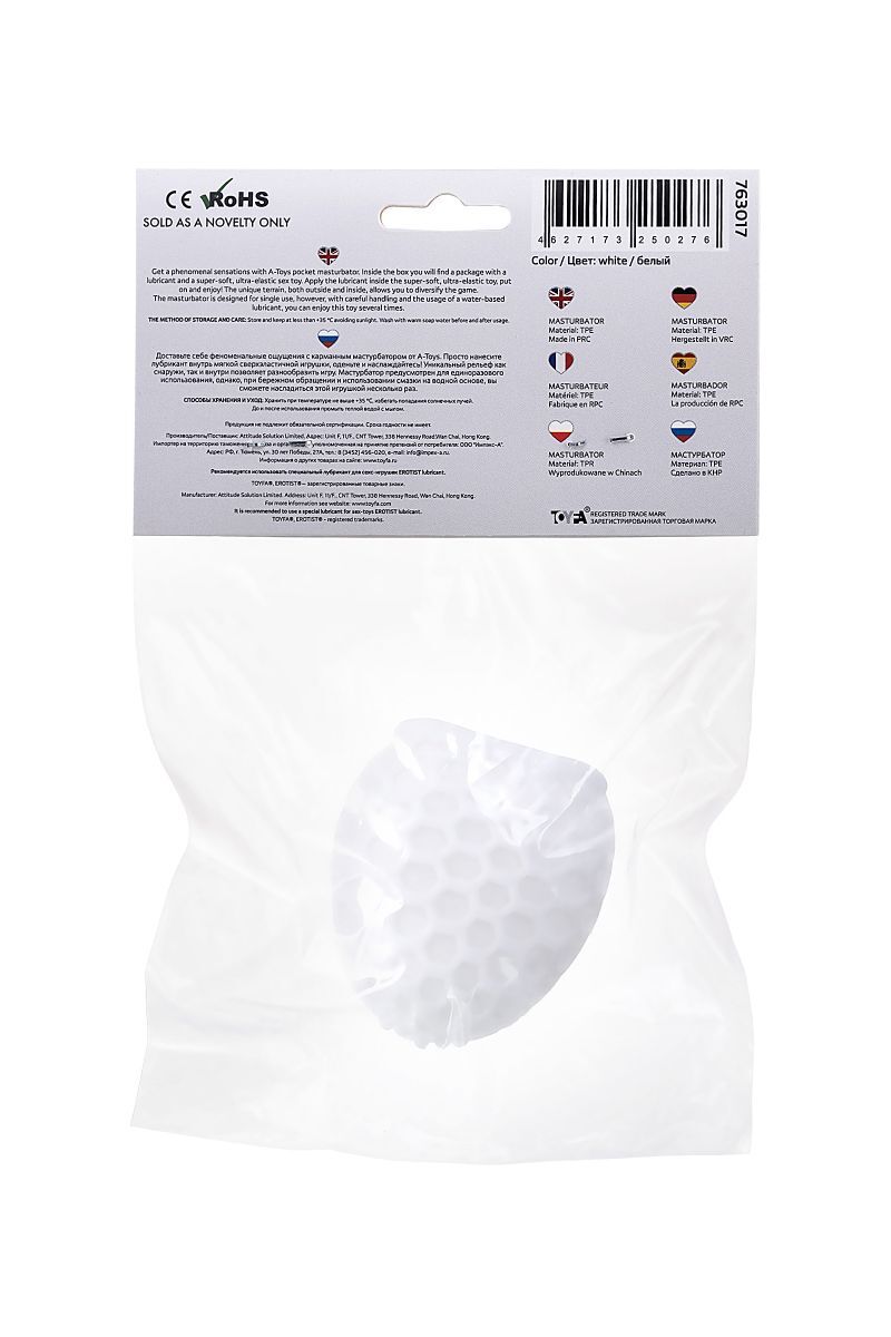 Доставьте себе феноменальные ощущения с карманным мастурбатором от A-Toys. Просто нанесите лубрикант внутрь мягкой сверхэластичной игрушки, оденьте и наслаждайтесь! Уникальный рельеф как снаружи, так и внутри позволяет разнообразить игру. Мастурбатор предусмотрен для единоразового использования, однако, при бережном обращении и использовании смазки на водной основе, вы сможете насладиться этой игрушкой несколько раз. Разный рельеф с обеих сторон.