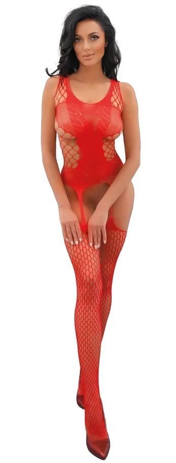 Ines - боди-комбинезон с имитацией чулок. Дизайн в виде крупной сетки дополнен контрастным полупрозрачным рисунком. Благодаря использованию большего количества нейлона, белье сохраняет очертания, не деформируется, растягивается и выгодно облегает фигуру. Даже после сильного растяжения, оно не деформируются, и всегда принимает исходную форму. Изделие не вызывает аллергию, не окрашивает. Уход и стирку следует производить в соответствии с инструкцией завода-изготовителя на этикетке. Трусики не входят в комплект!